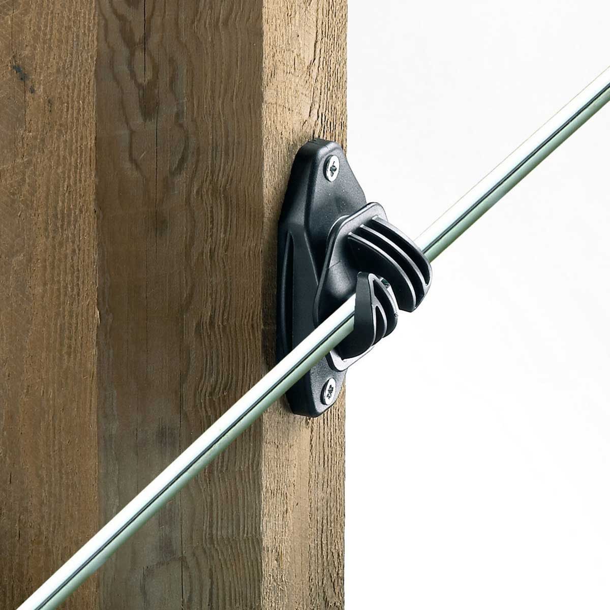 Äußerst robuster Isolator aus bruchsicherem Kunststoff zum Einschrauben mit Holzgewinde.