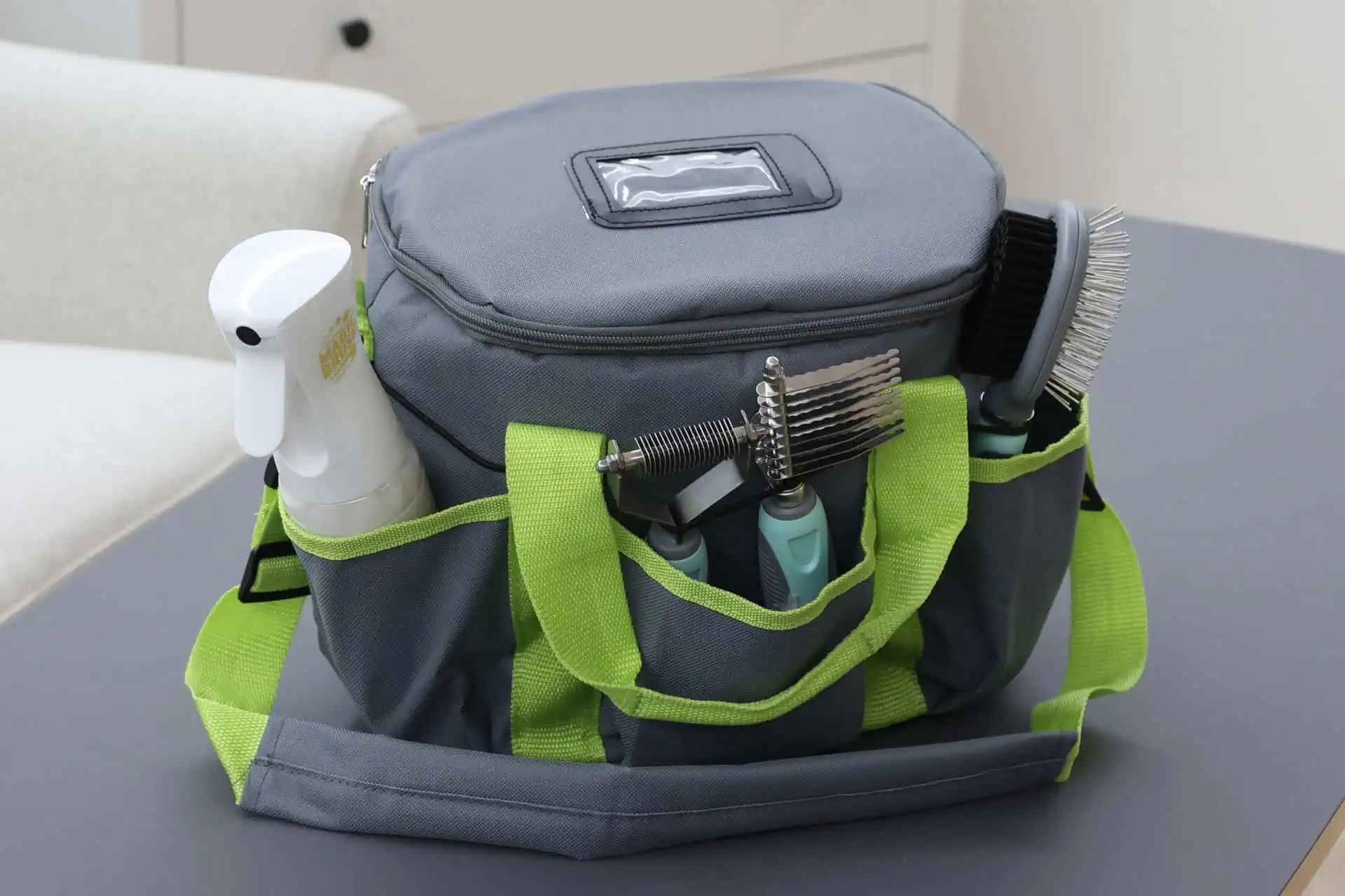 Die Aufbewahrungstasche 27x22x22, Anthrazit/Pistazie, eignet sich besonders für Personen, die ihre Pflegeprodukte oder Spielzeuge ordentlich und sicher aufbewahren möchten.
