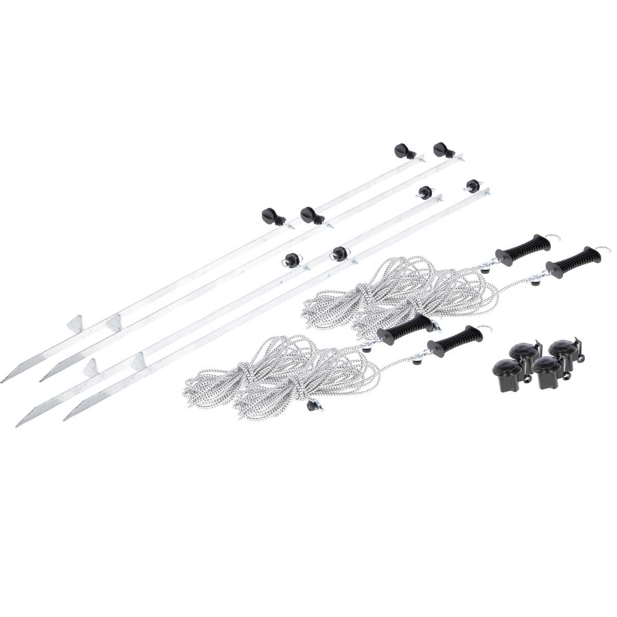 - jeweils bestückt mit 4 x FlexiRope inkl. Torgriff mit verzinktem Haken und passenden Torgriffisolatoren