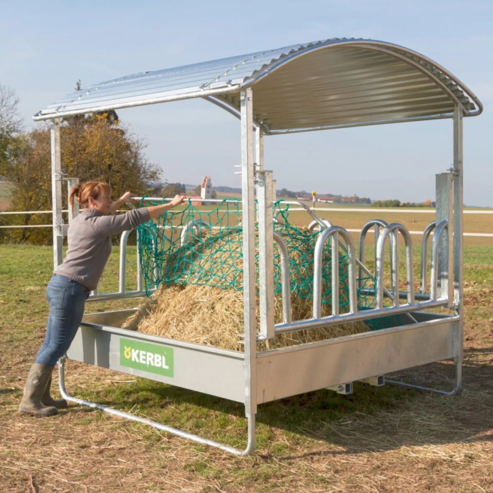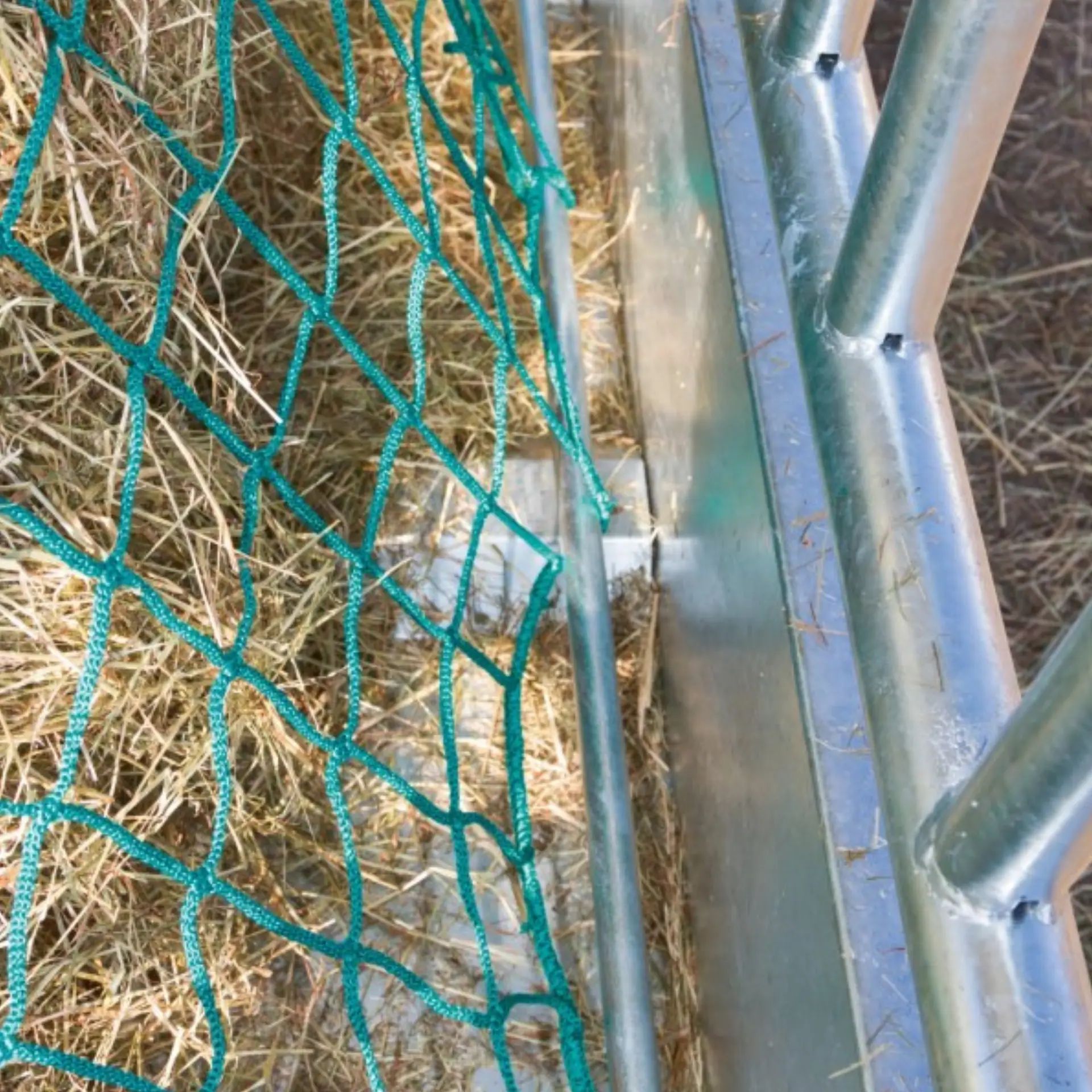 Der hochwertige, verzinkte Rahmen sorgt dafür, dass das Netzt immer sicher an seinem Platz ist. Der Rahmen kann einfach auf- und zugeklappt werden und das Netz muss nicht bei jedem Befüllen neu festgemacht werden. Zusätzlich spannt der Rahmen das Futtersparnetz direkt überdas Heu und ist für alle quadratische Futterraufen geeignet.