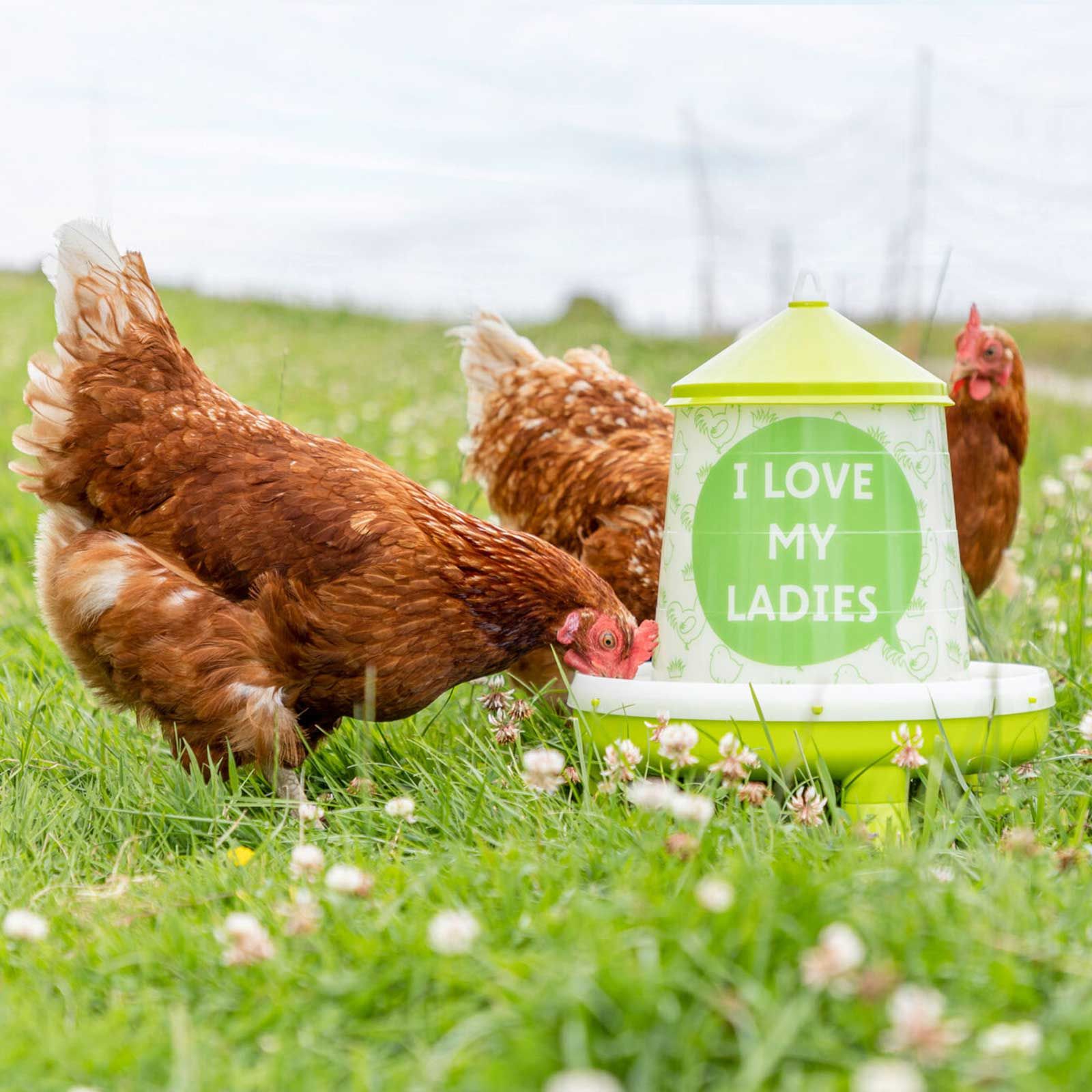 1x Hühner Futterautomat mit Füßen "I love my Ladies"
