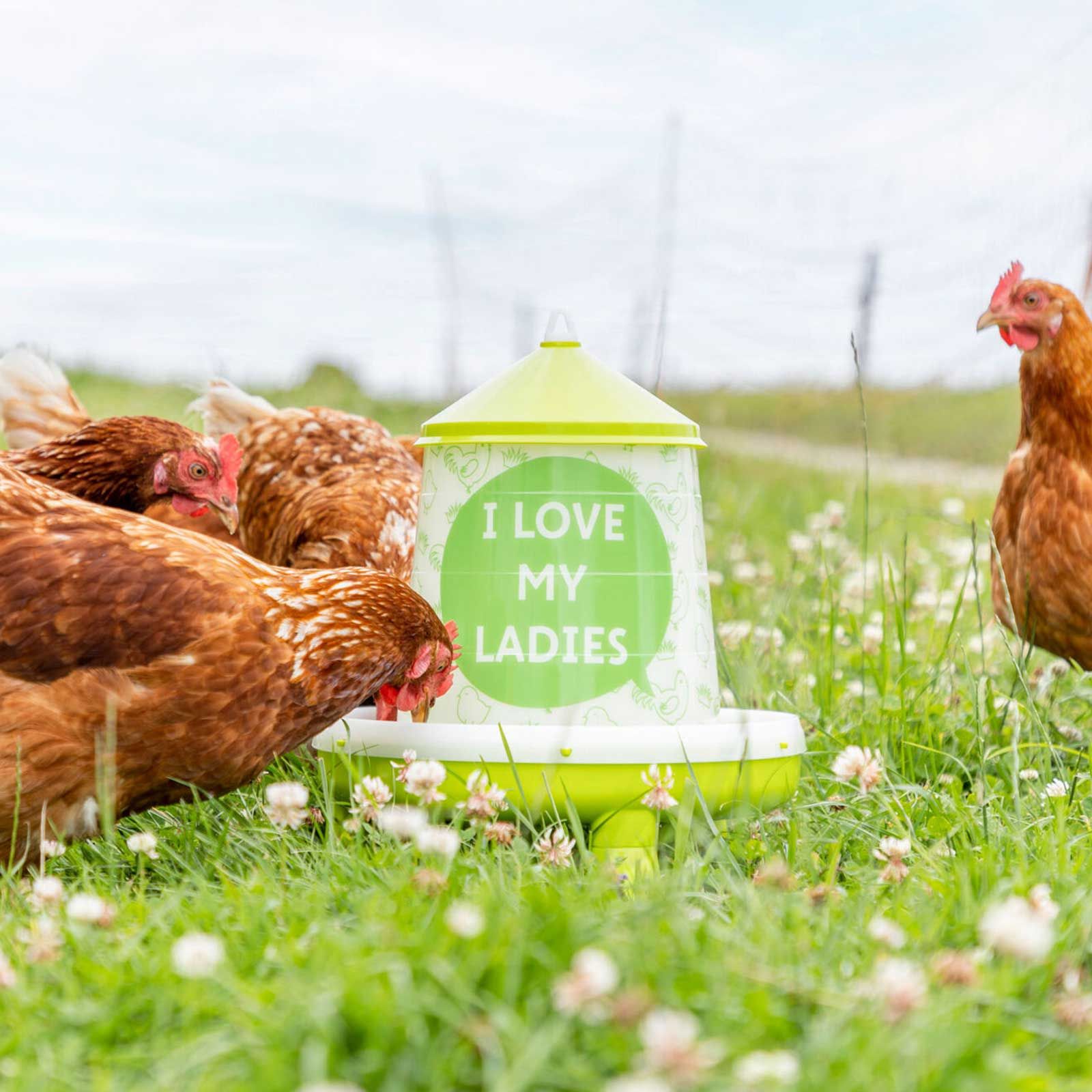 Hühner Futterautomat mit Füßen "I love my Ladies"