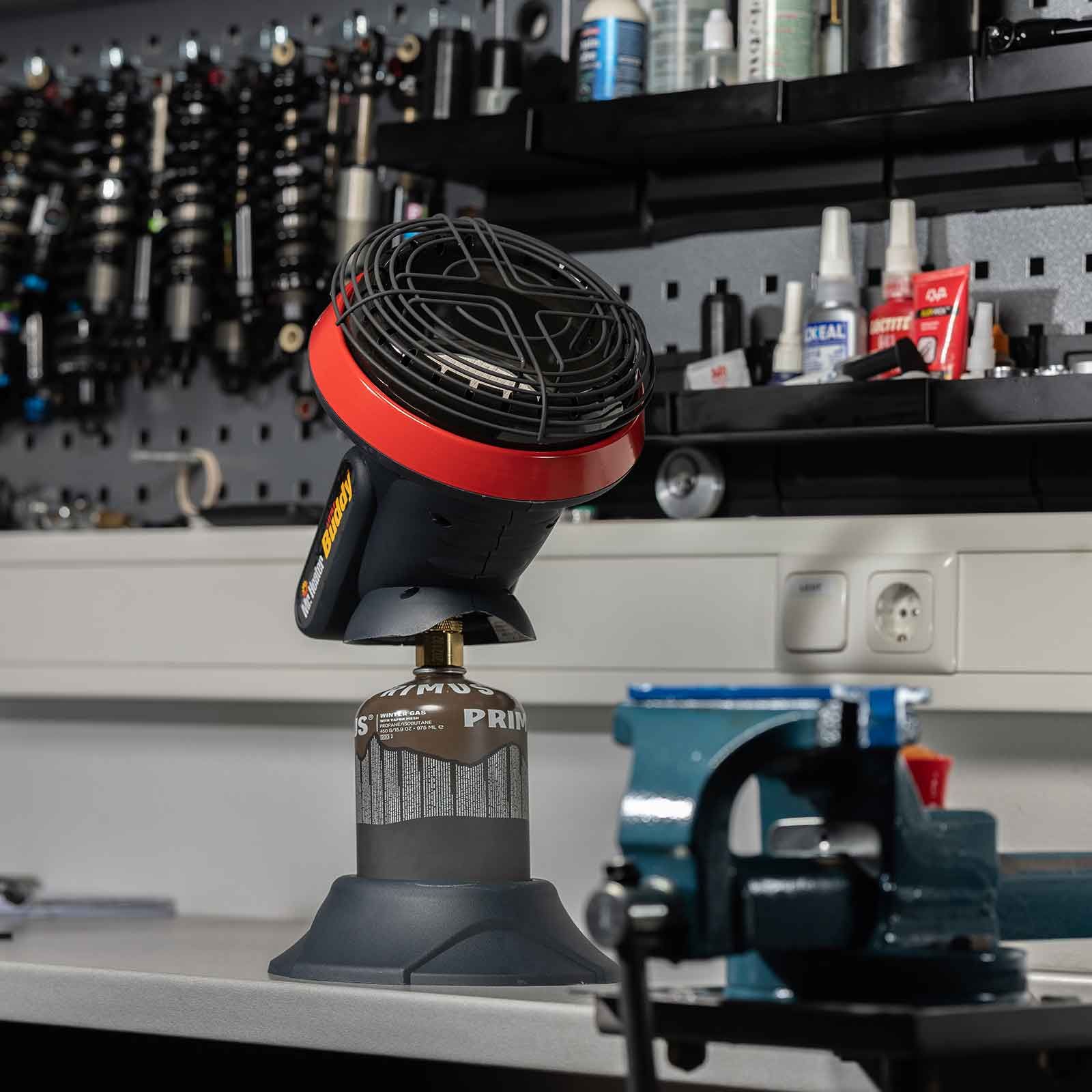 Die Gasheizung - Little Buddy dient als praktische Heizquelle für kleine Freizeitbereiche wie Zelte, Hütten, Angelhütten und geschlossene Veranden, die über eine ausreichende Verbrennungsluftzufuhr und Belüftung verfügen. Dank ihrer einfachen Konnektivität zu einer Propan (G31) oder Butan/Propan-Mischung (G30+G31) Kartusche kann die Little Buddy auch als Notraumheizung dienen.
