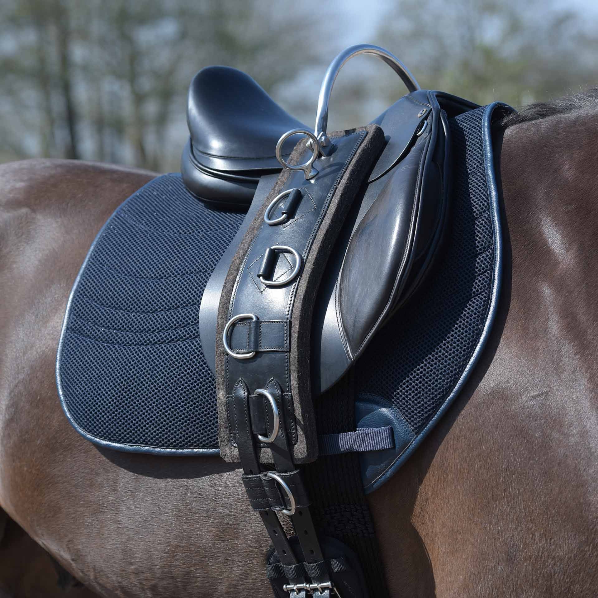 - beidseitige Doppelgurtstrupfen für die Nutzung eines beliebigen Kurzgurtes je nach Pferdeumfang und Materialvorliebe - daher kein Bauchgurt im Lieferumfang enthalten