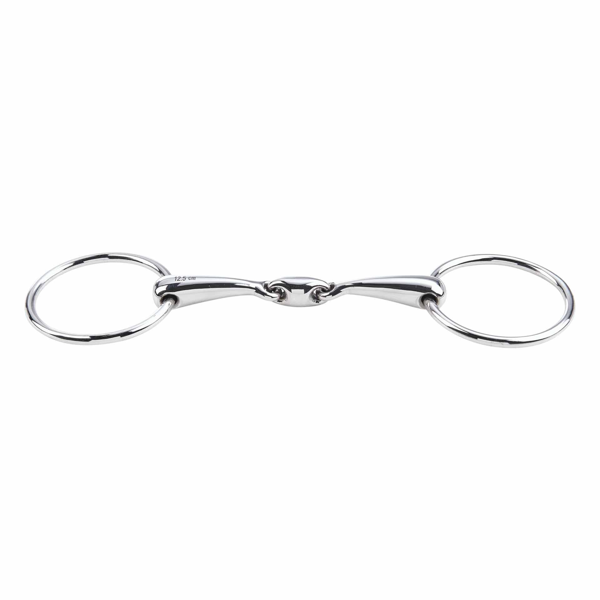Ausgeführt in Edelstahl, sowohl für das Mundstück als auch die Ringe, zeichnet sich diese Wassertrense durch ihre Haltbarkeit und Korrosionsbeständigkeit aus. Alle Verbindungsglieder sind sorgfältig auf die jeweilige Gebissgröße und -stärke abgestimmt, um den optimalen Komfort und die Effektivität zu gewährleisten.