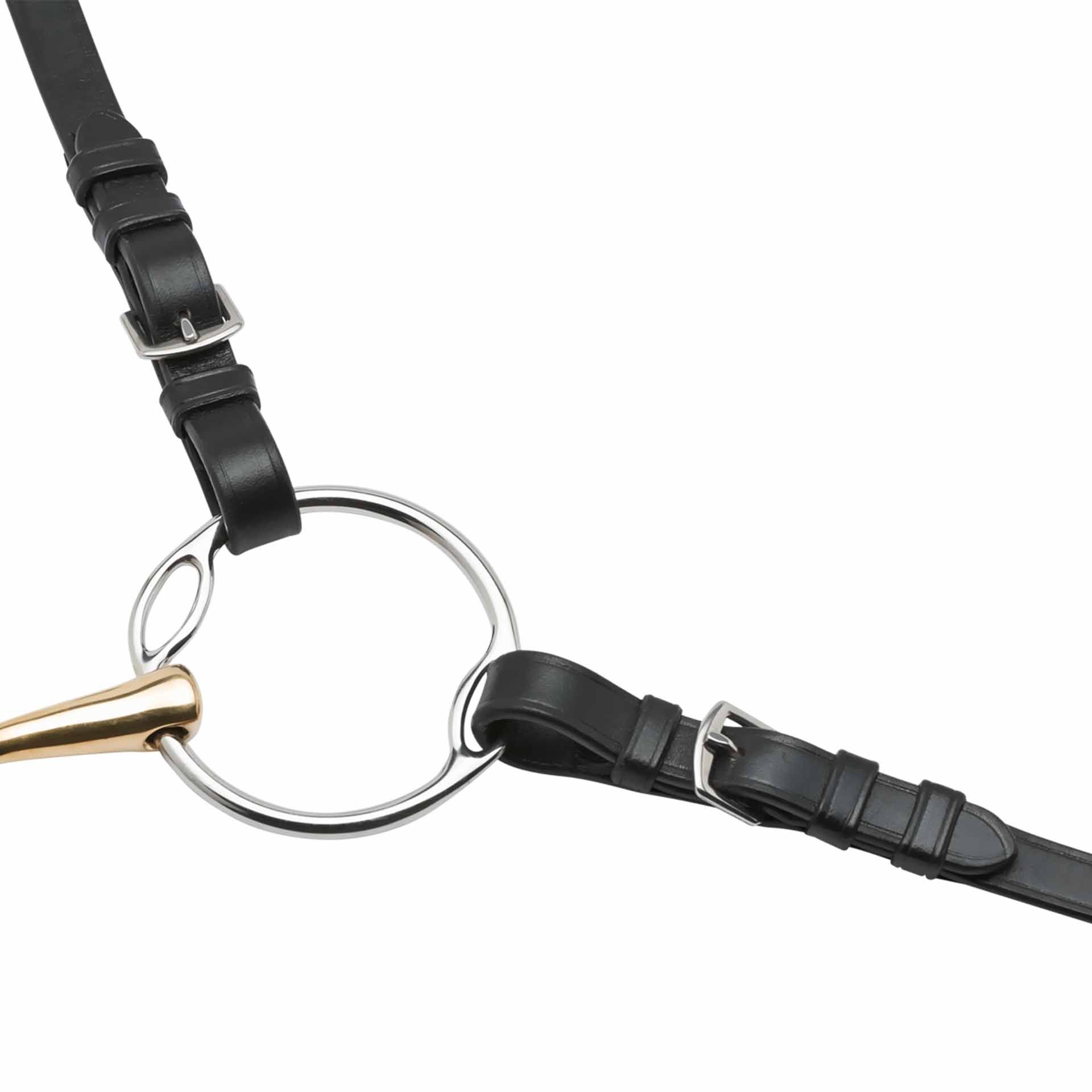 Es ist wichtig, dass das Gebiss korrekt in die Gebissriemen der Trense oder Kandare verschnallt wird. Bei einer korrekten Höhenverschnallung mittels der Gebissriemen bilden sich ca. 2-3 kleine Falten an den Maulwinkeln.