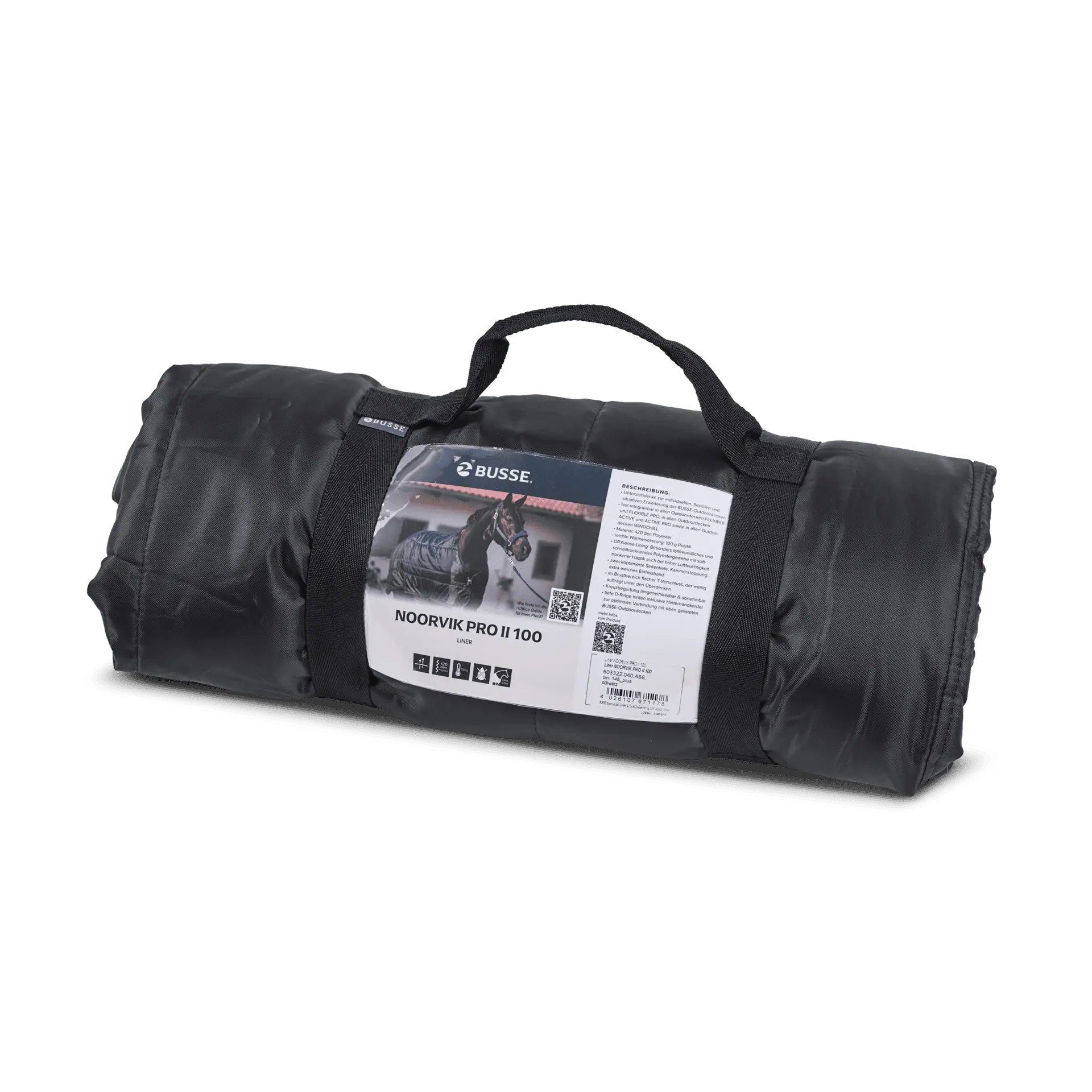Die BUSSE Liner NOORVIK PRO 100 ist eine Unterziehdecke zur individuellen, flexiblen und situativen Erweiterung der BUSSE-Outdoordecken. Sie ist fest integrierbar in allen Outdoordecken FLEXIBLE und FLEXIBLE PRO, in allen Outdoordecken ACTIVE und ACTIVE PRO sowie in allen Outdoordecken WINDCHILL. Mit dieser Unterziehdecke können Sie den Schutz und Komfort der Outdoor-Decken je nach Wetter und Bedarf des Pferdes anpassen.