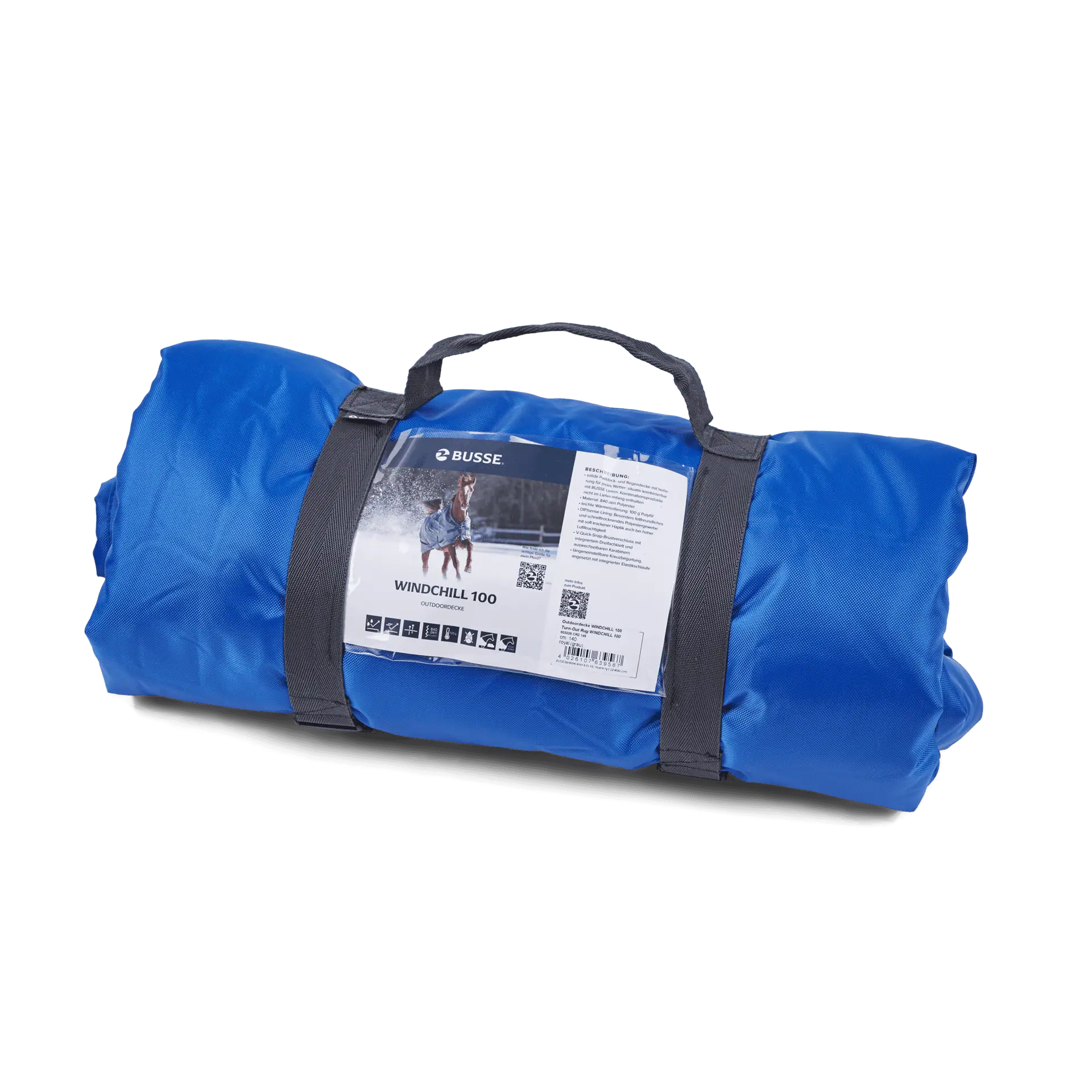 Die BUSSE Outdoordecke WINDCHILL 100 ist ideal für Pferdebesitzer, die eine robuste, wetterfeste und zugleich komfortable Decke suchen, die einfach an unterschiedliche Bedingungen angepasst werden kann und das ganze Jahr über eingesetzt werden kann.
