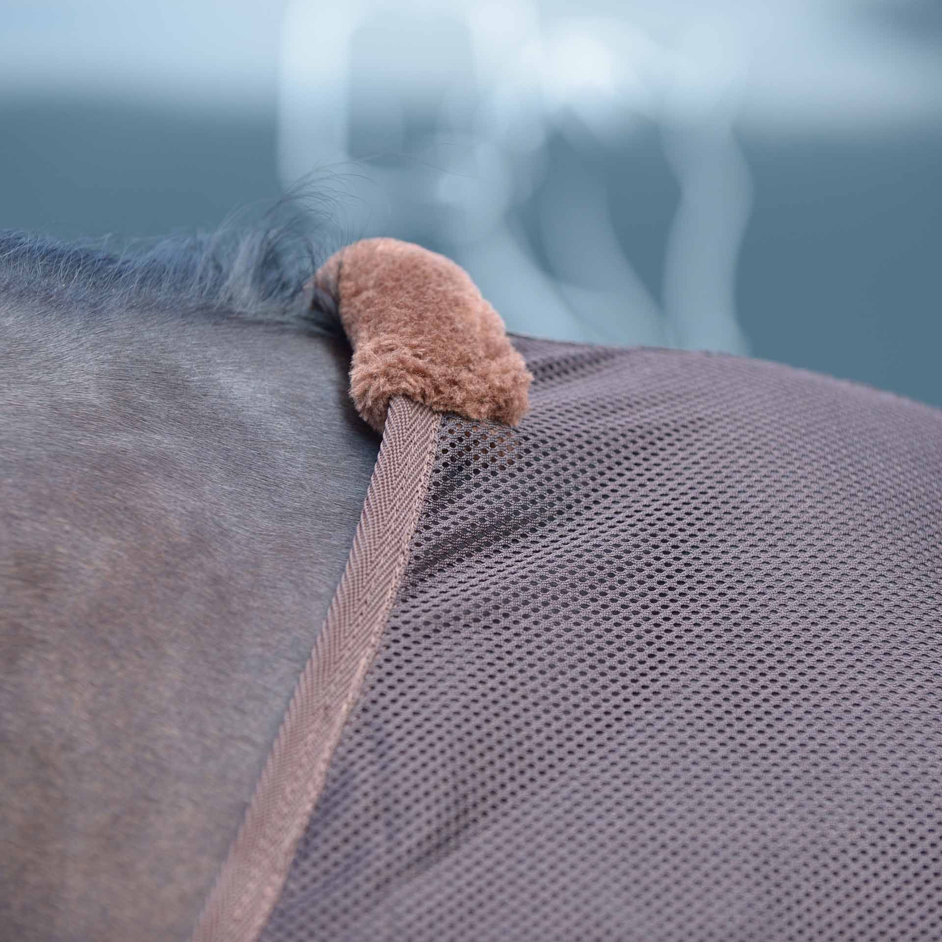Die Transport-Fliegendecke PROFESSIONAL II bietet eine optimale Passform durch die Rückenmittelnaht. Ein weiches Widerristpolster erhöht den Komfort für das Pferd. Die Decke verfügt über einen einfachen T-Verschluss im Brustbereich und eine längeneinstellbare Kreuzbegurtung mit T-Verschluss, die durch ein praktisches und innovatives Klettsystem abnehmbar ist. Eine tiefe Hinterhandkordel rundet die Ausstattung ab.