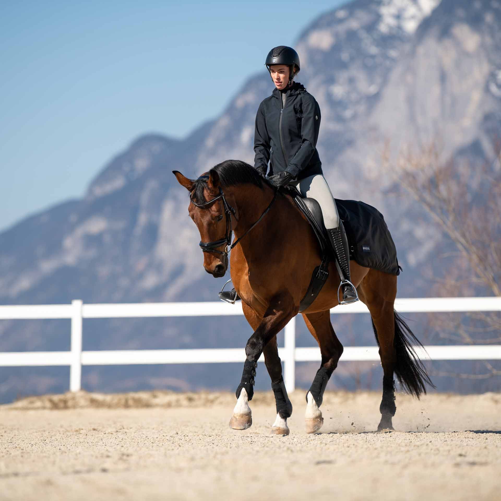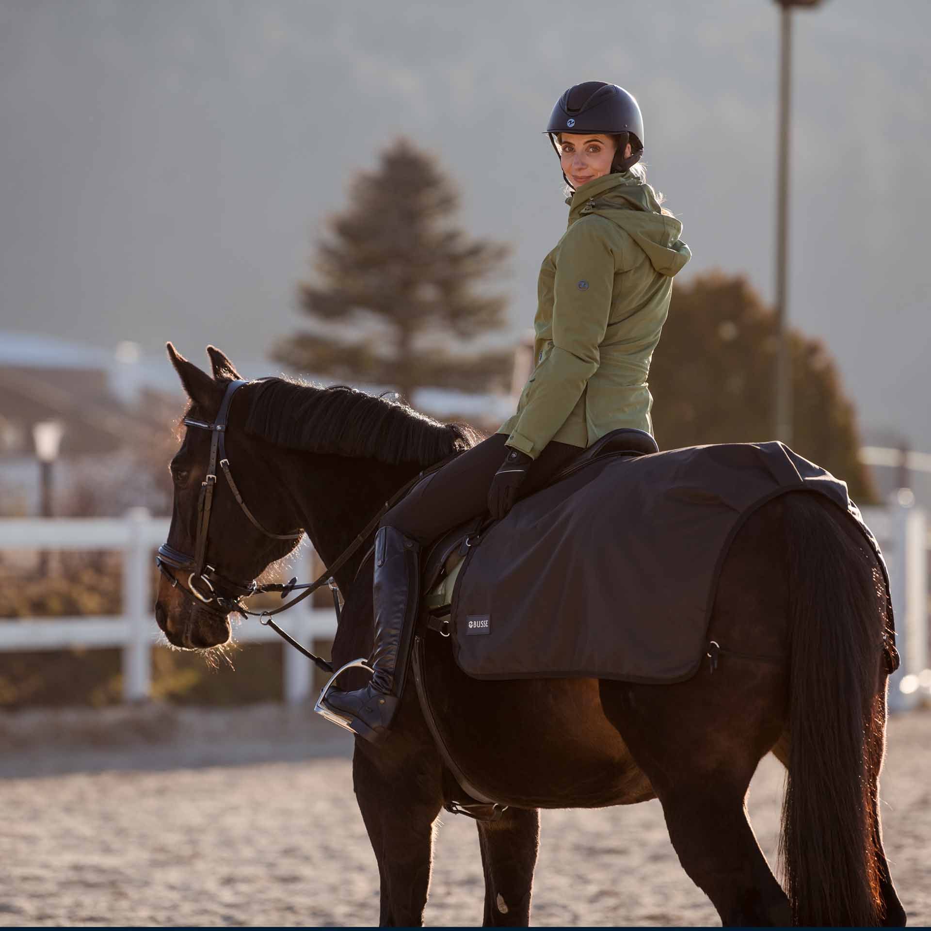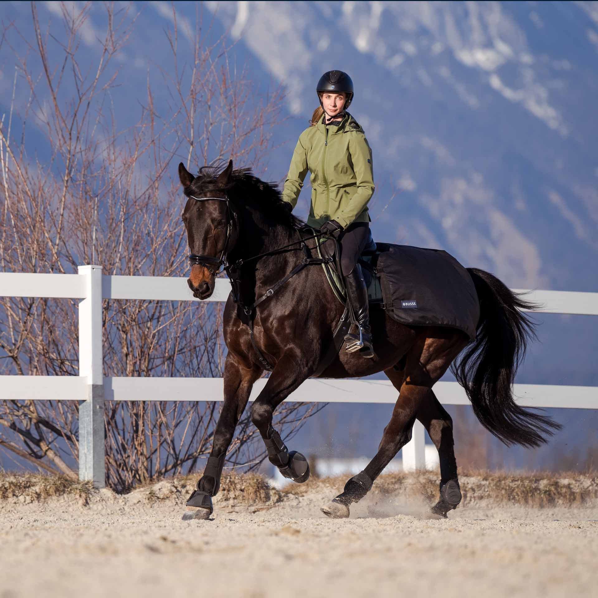 Die BUSSE Trainingsdecke RAIN 50 ist ideal für Pferdebesitzer, die ihren Pferden beim Training Schutz bieten möchten, ohne ihre Bewegungsfreiheit einzuschränken.