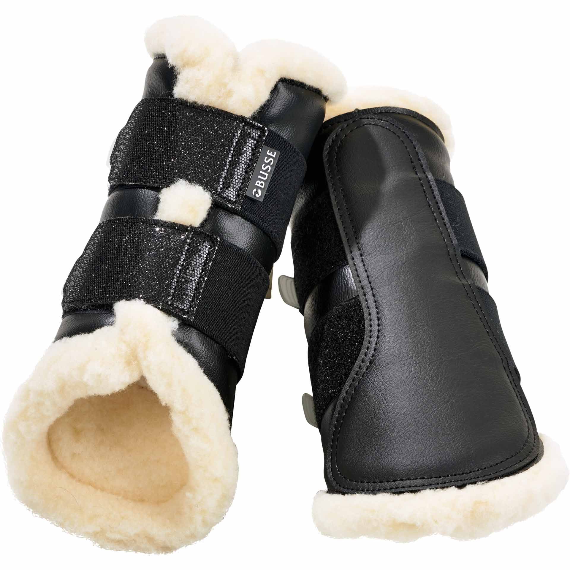 Die BUSSE Gamaschen ST. GEORGES GLITTER sind geschlossene Dressurgamaschen, die für höchste Ansprüche konzipiert wurden. Sie sind innen, einschließlich aller Kanten, besonders dick und weich mit Kunstfell abgepolstert, das einen hohen Komfort und eine schonende Behandlung des Pferdebeins gewährleistet.