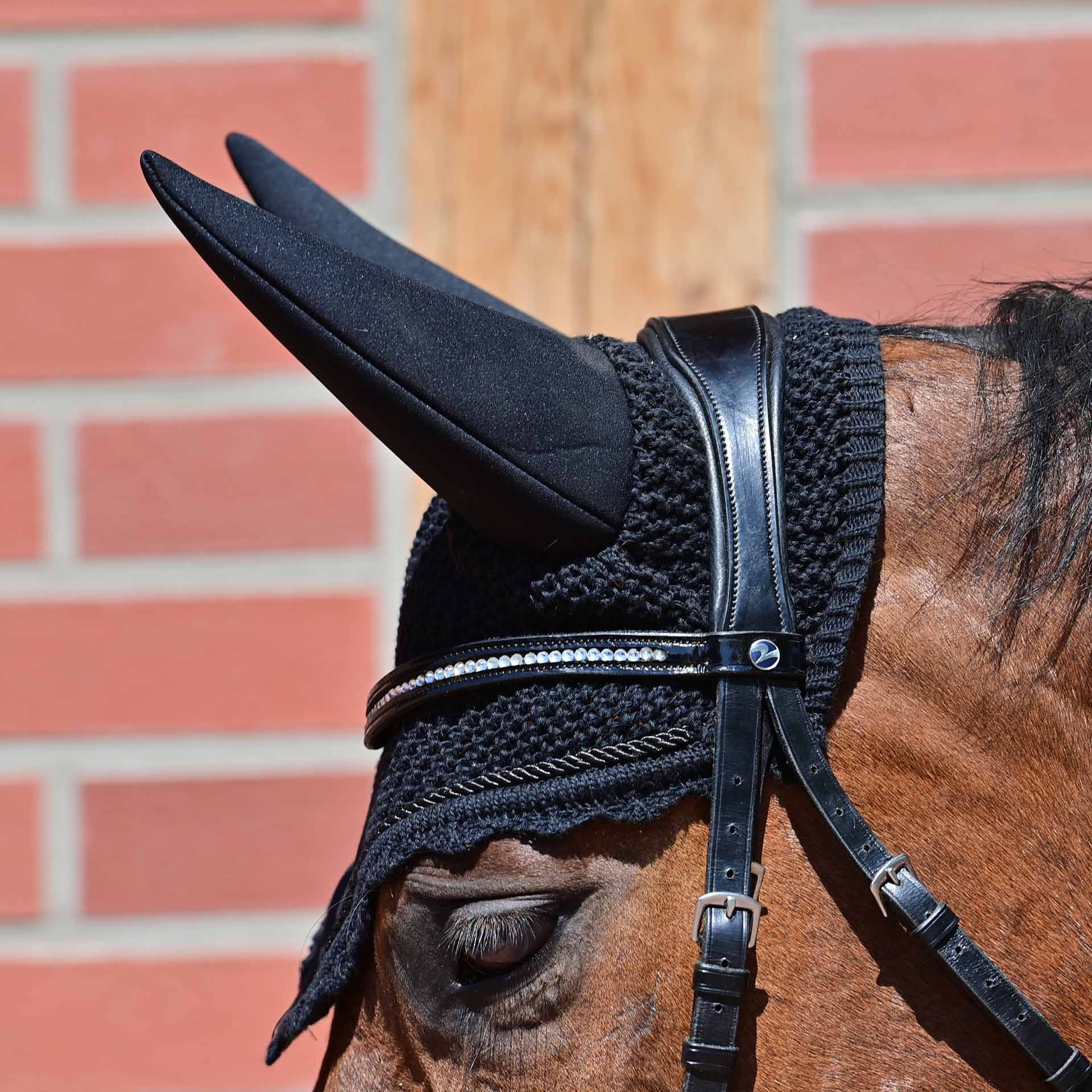 Ein besonderer Vorteil dieser Ohrenhaube sind die geschlossenen Ohren aus synthetischem Kautschuk, die eine maximale Geräuschdämmung gewährleisten. Darüber hinaus sichert die breite Auflagefläche im Genick die Haube zuverlässig unter der Trense, sodass sie auch bei aktiven Bewegungen sicher sitzt.