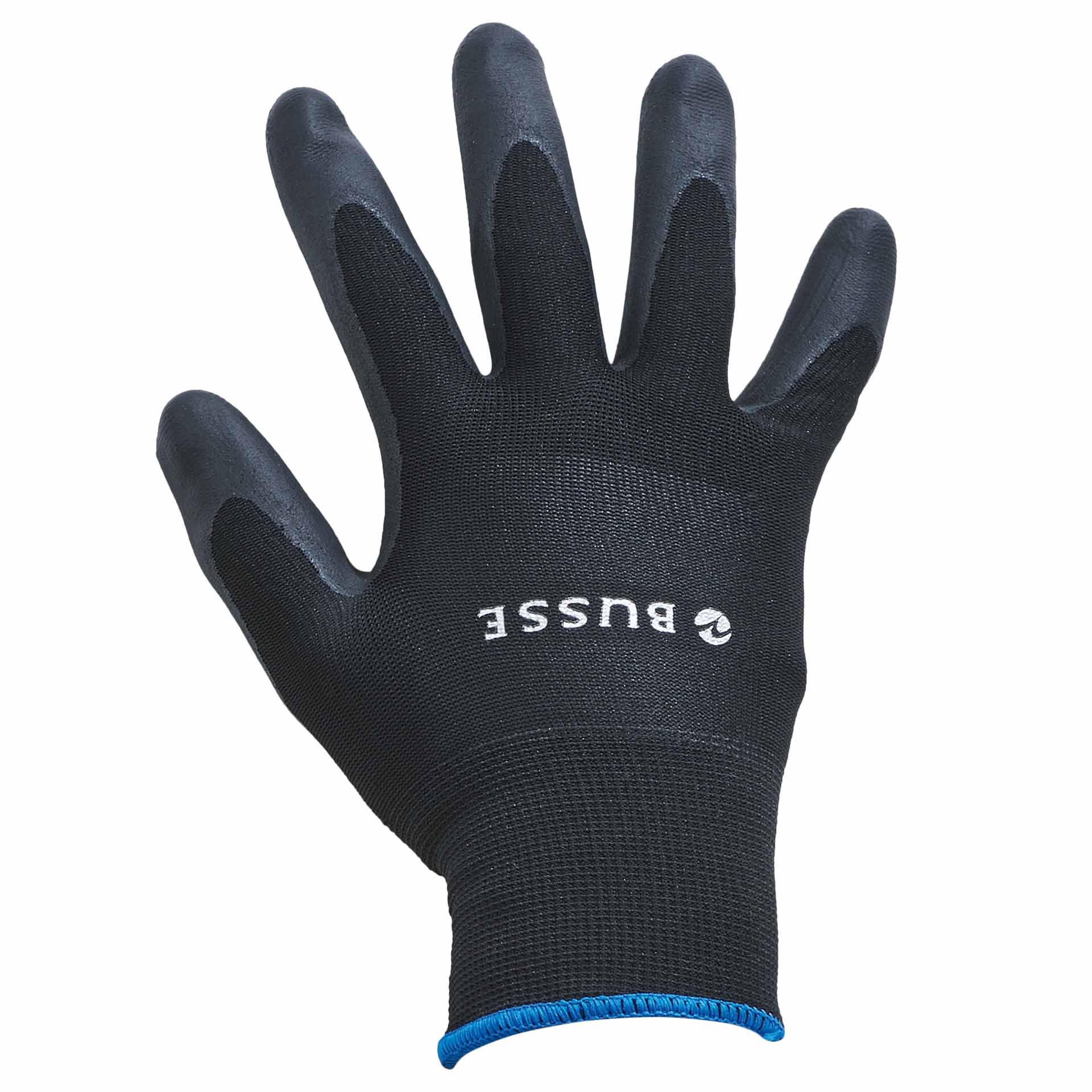 Die BUSSE Winterhandschuhe ALLROUND-WINTER sind enorm strapazierfähige Handschuhe für Reiten und Stallarbeit. Sie haben ein angenehm elastisches Obermaterial, ein weiches, wärmendes Fleecelining und einen wasserdichten, widerstandsfähigen Nitril-Besatz mit gutem Grip in der gesamten Handinnenfläche und an den Fingerspitzen. Zudem verfügen sie über ein elastisches Bündchen. Das Material besteht aus 95% Polyester und 5% Elasthan, und das Lining aus 100% Polyester.
