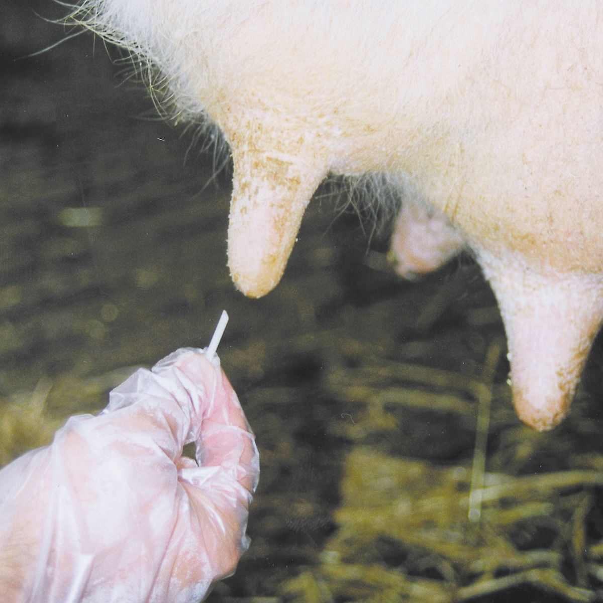 Zum Ruhigstellen verletzter Zitzen. Das neue Euterzäpfchen ist dem natürlich vorkommenden Talg des Strichkanals nachempfunden und schädigt daher wissenschaftlich nachweislich nicht.