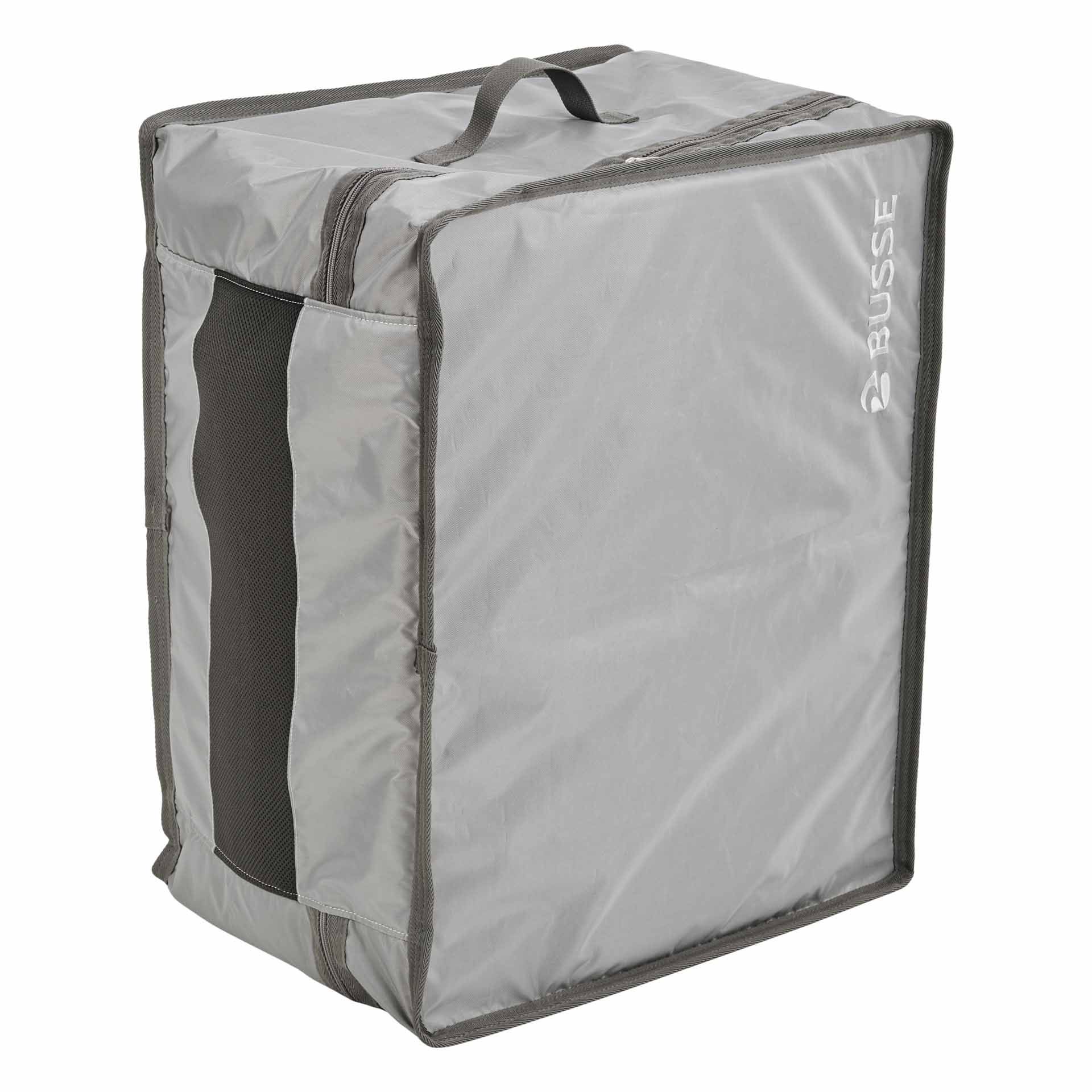 Die BUSSE Deckentasche RIO bietet eine sehr geräumige Aufbewahrungstasche mit Griffen an zwei Seiten, einem Einschubfach mit Sichtfenster, einem Zwei-Wege-YKK®-Reißverschluss für optimales Befüllen, ist aus stabilem, pflegeleichtem Polyestermaterial gefertigt und hat einen Netzeinsatz für ideale Belüftung.