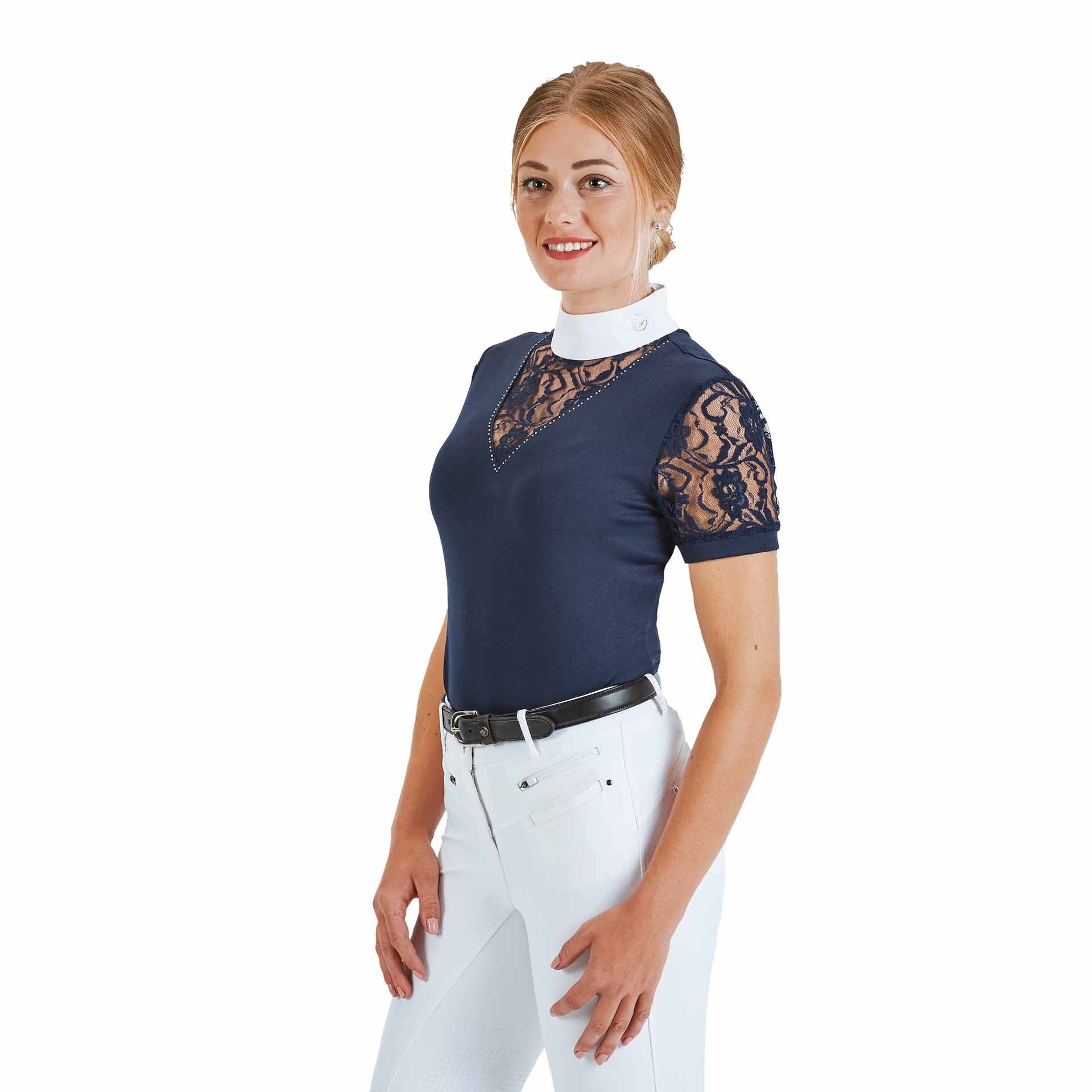 Das BUSSE Turnier-Shirt RAVENNA, Kurzarm ist ein elegantes Shirt, das durch seinen femininen Spitzeneinsatz besticht. Es verbindet hohe Funktionalität mit exklusiver Optik und ist daher die ideale Wahl für anspruchsvolle Reitsportler.