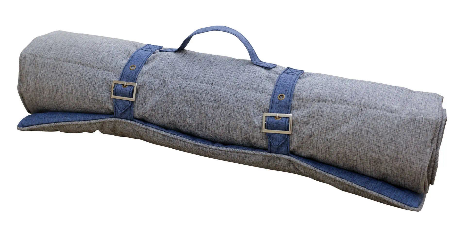 Die Füllung und der Bezug der Reisematte bestehen aus recycelten PET-Flaschen, wodurch Ressourcen gespart und Abfall reduziert wird.