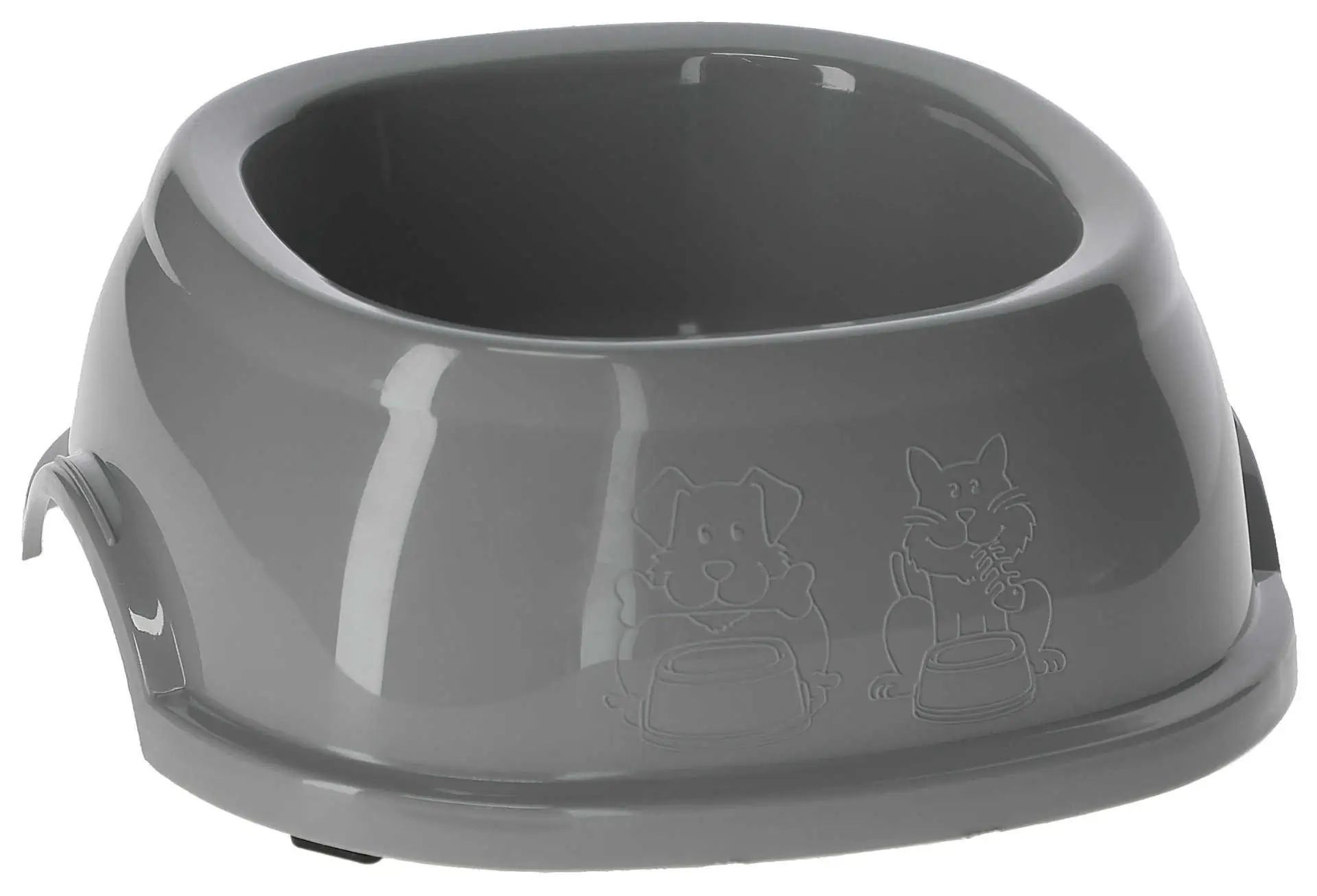 Der Futternapf besteht aus Kunststoff.