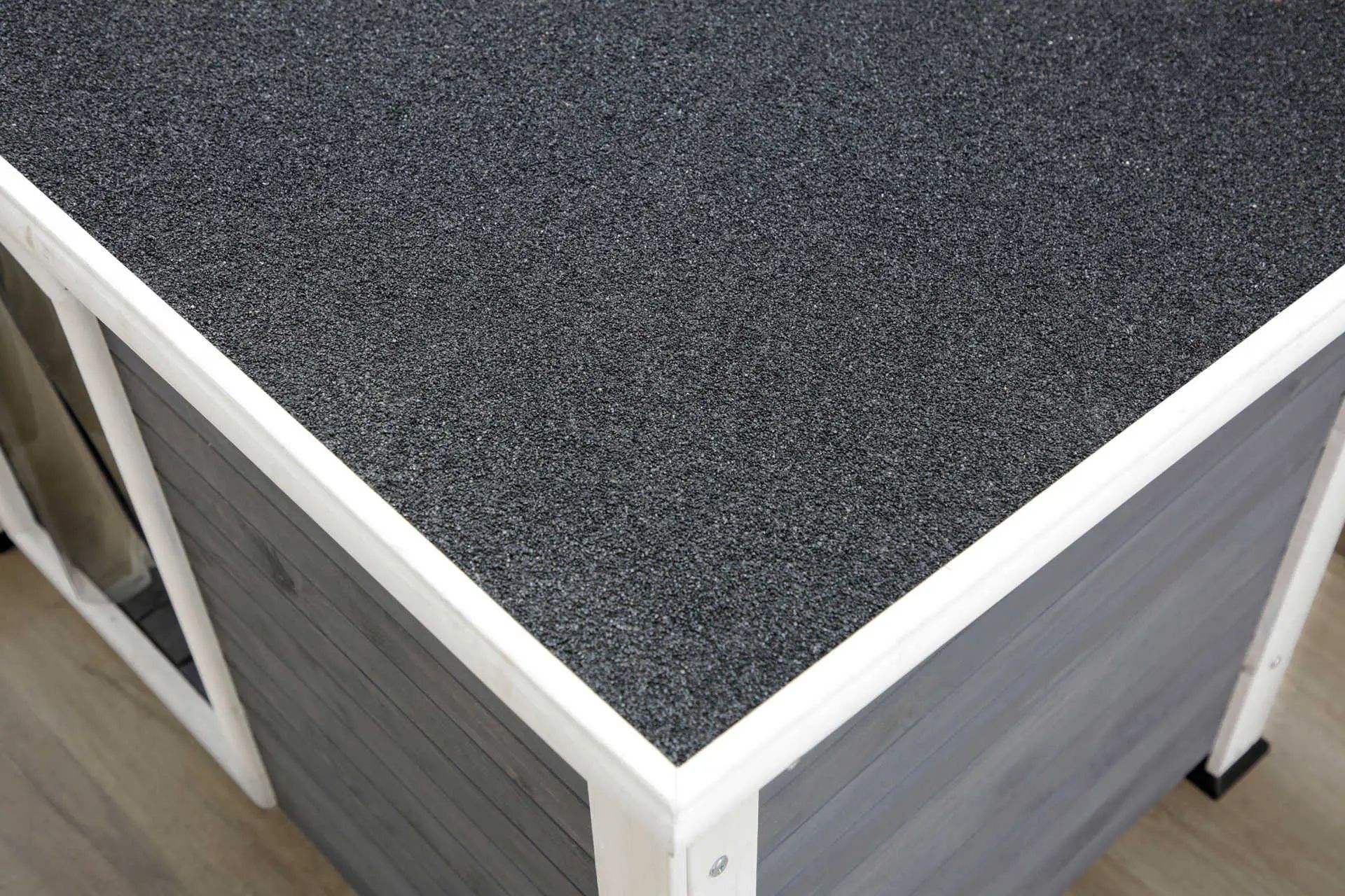 Die Hundehütte Kenny ist eine stilvolle und funktionale Hütte, die Ihrem Hund einen gemütlichen und wetterfesten Unterschlupf bietet. Das Bitumendach ist wetterfest und schützt Ihren Hund vor den Elementen, damit er bei jedem Wetter sicher und trocken ist.
