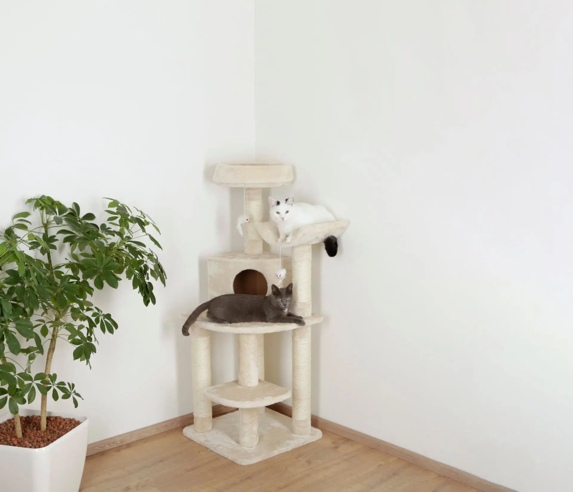 Sisal an den Säulen des Eckkratzbaums Zirkonia bietet Ihrem Haustier eine geeignete Oberfläche zum Krallen schärfen. Dies kann dazu beitragen, Ihre Möbel vor Kratzschäden zu schützen.