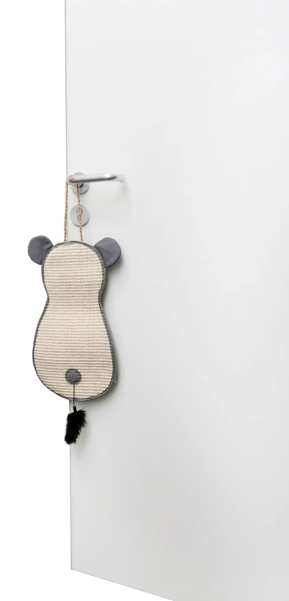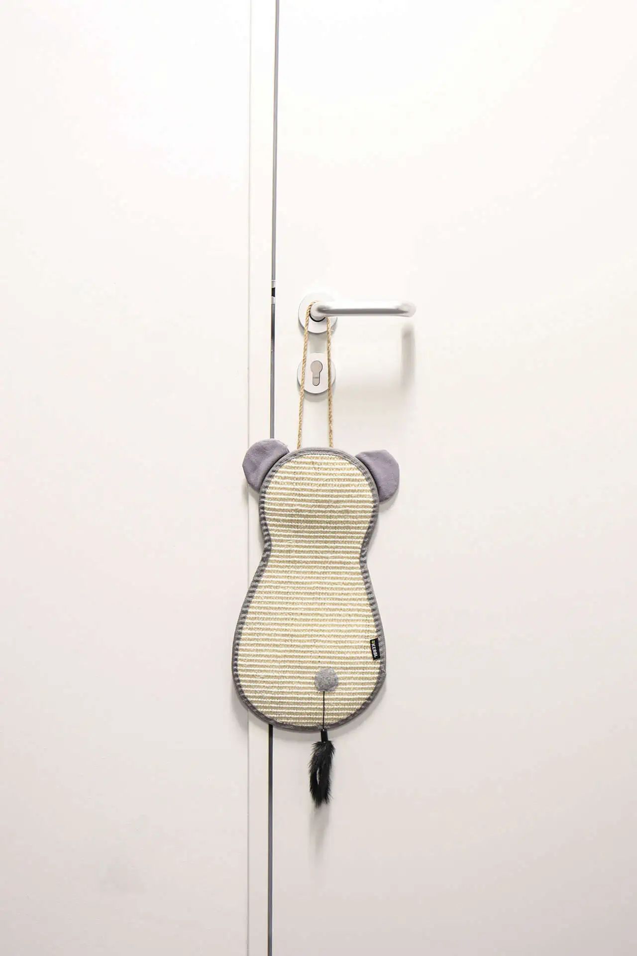 Die Kratzmatte für Türgriff aus Sisal kommt mit einer Befestigungsschnur für den Türgriff und einer Spielzeugfeder, die zusätzlichen Spielspaß und Interaktion für Ihre Katze bietet.