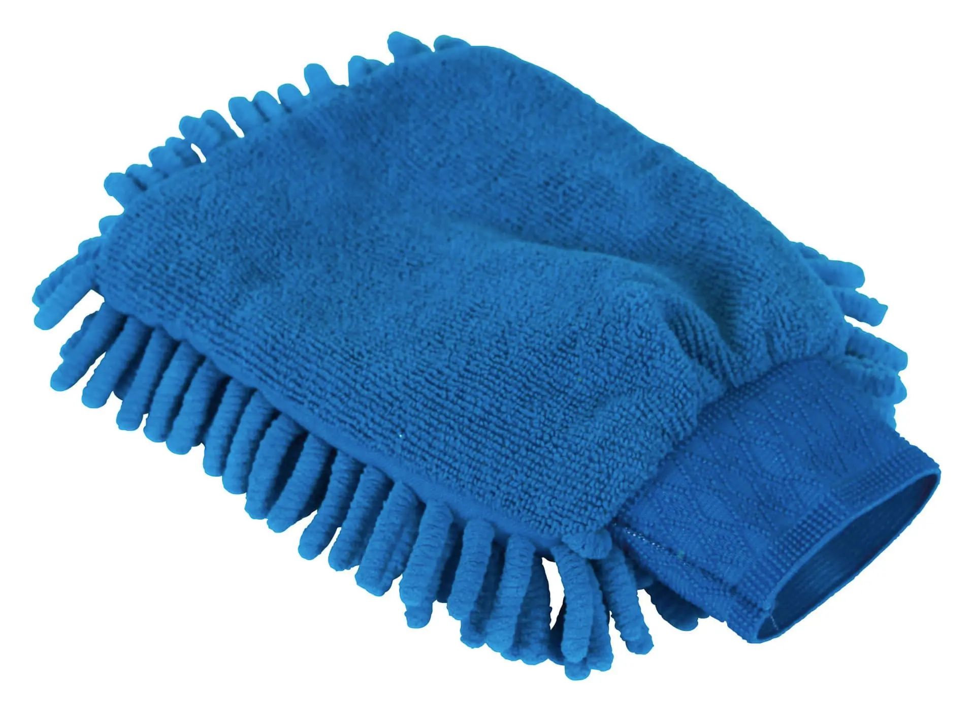 Der Putzhandschuh besteht aus Mikrofasermaterial.