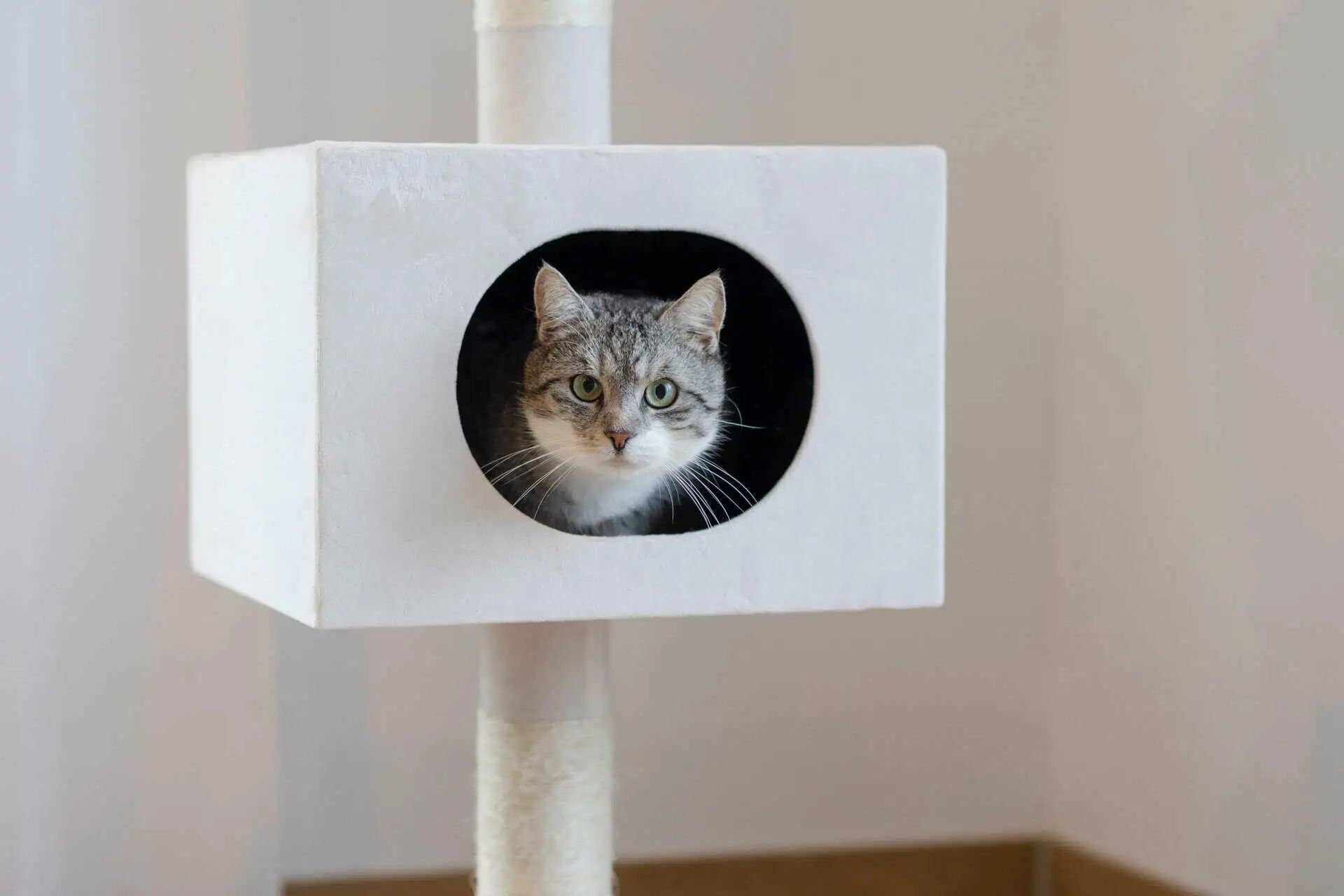 Der Kratzbaum Ferdi weiß erfüllt die Funktion, Ihrer Katze einen eigenen Bereich für Spaß, Aktivität und Entspannung zu bieten. Er trägt dazu bei, das natürliche Kratzverhalten Ihrer Katze zu befriedigen, wodurch ihre Krallen gesund und scharf bleiben und Ihr Wohnmobiliar vor möglichen Schäden geschützt wird.