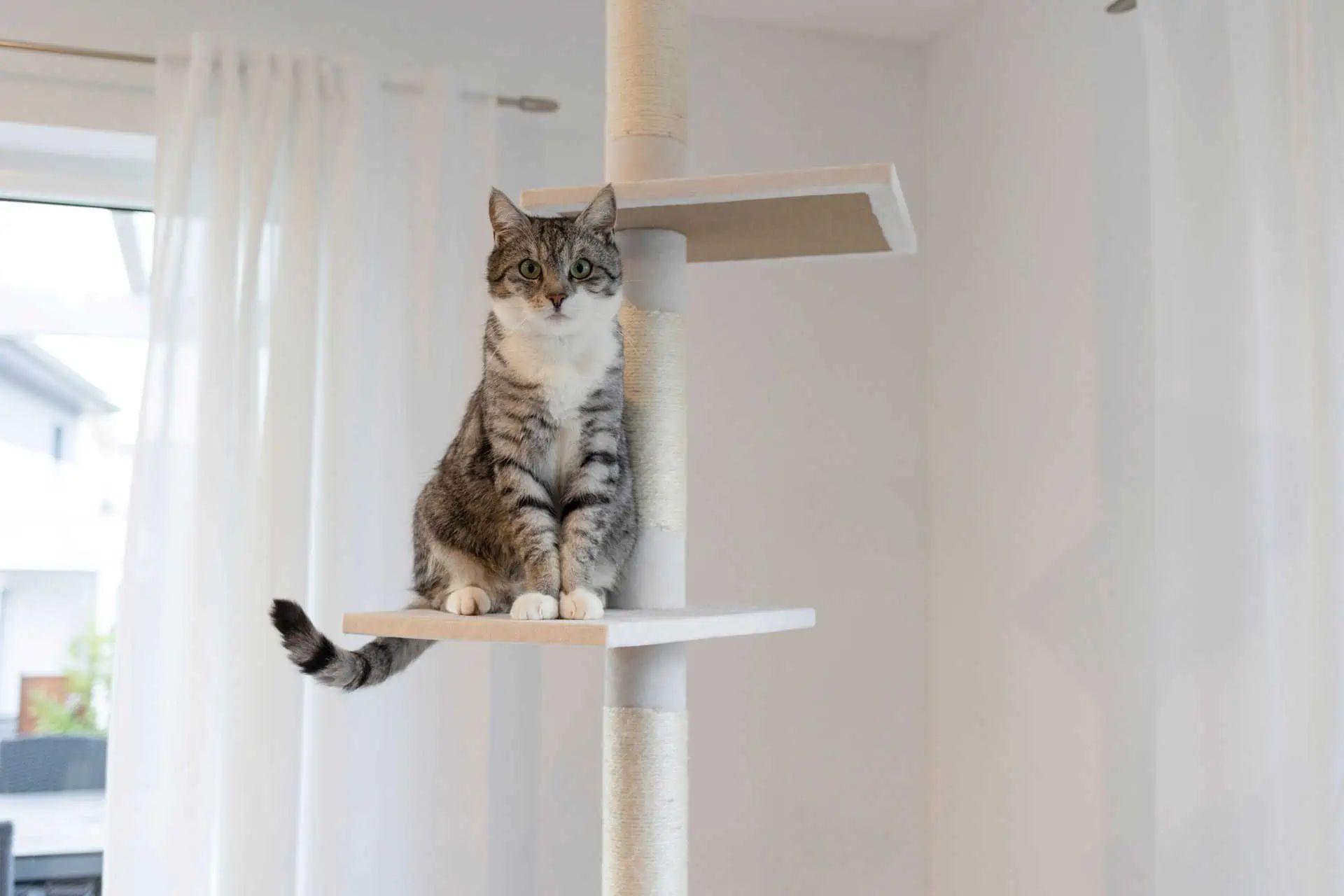 Der Kratzbaum Ferdi weiß eignet sich besonders für diejenigen Katzenbesitzer, die ihren Katzen eine hohe und stabile Klettermöglichkeit bieten möchten. Seine verstellbare Höhe macht ihn ideal für verschiedene Raumdeckenhöhen.
