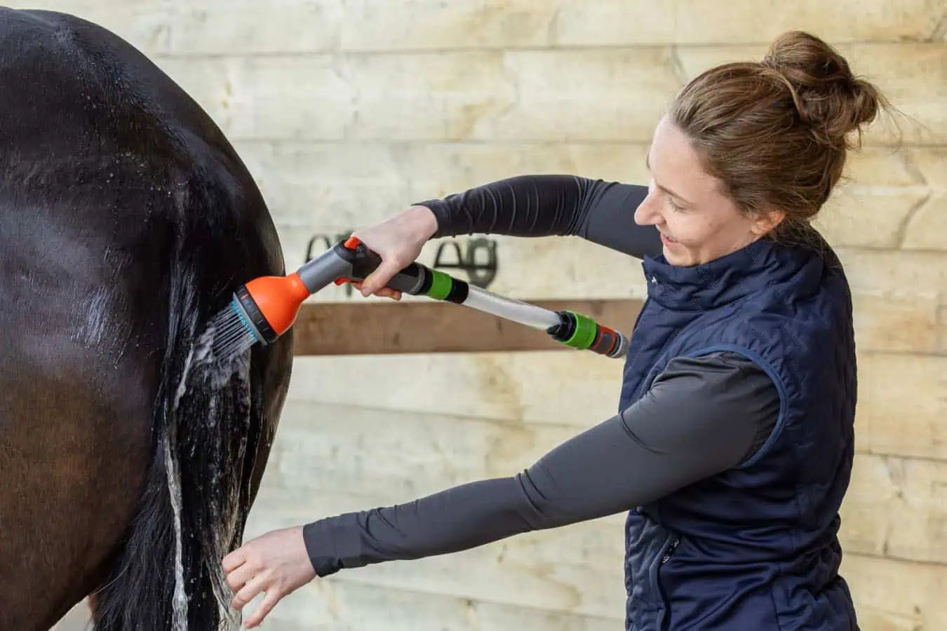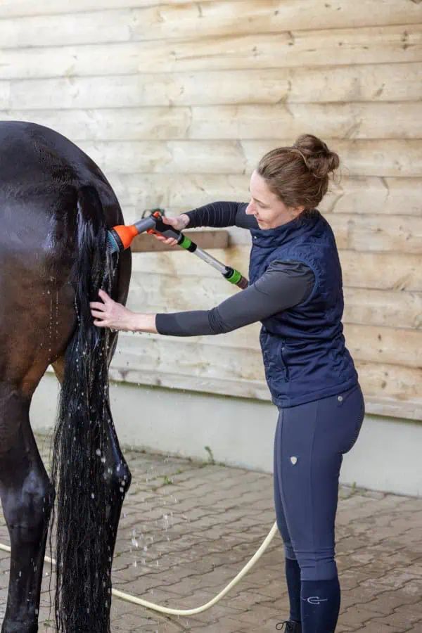 - über einen längeren Zeitraum angewendet, kann die Pferde-Salzdusche Folgeerscheinungen von Hautirritationen (z. B. Scheuern) unterbinden
