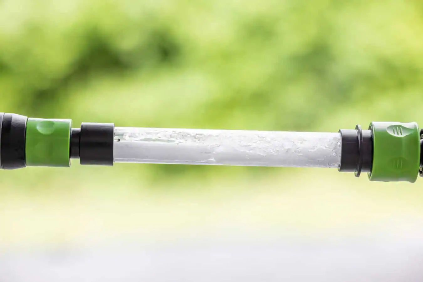 - Ein bis zwei Sticks in das Magazin stecken und mit einer Brause und dem Wasserschlauch verbinden. Der Inhalt löst sich in kaltem Wasser in ca. 3 Minuten auf.