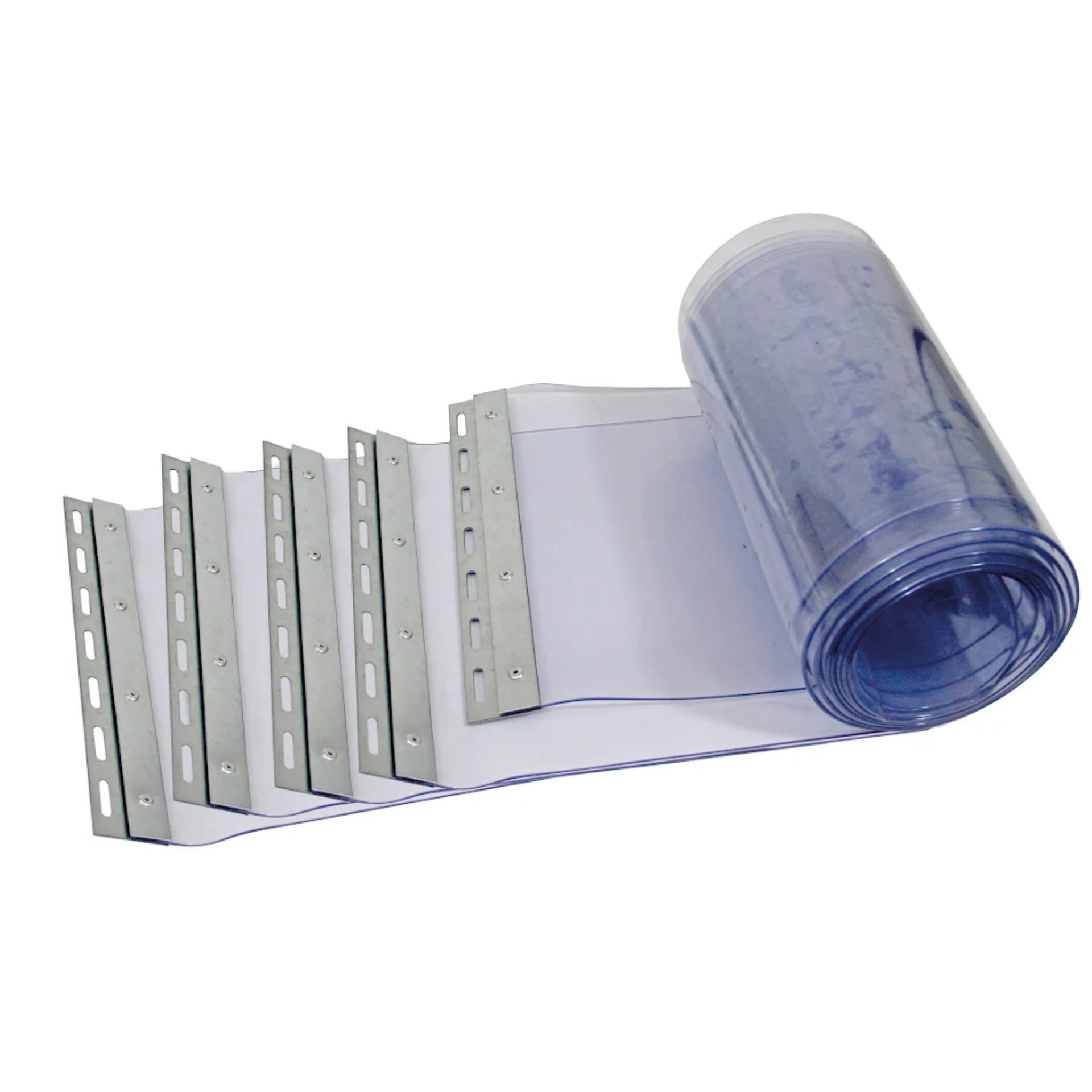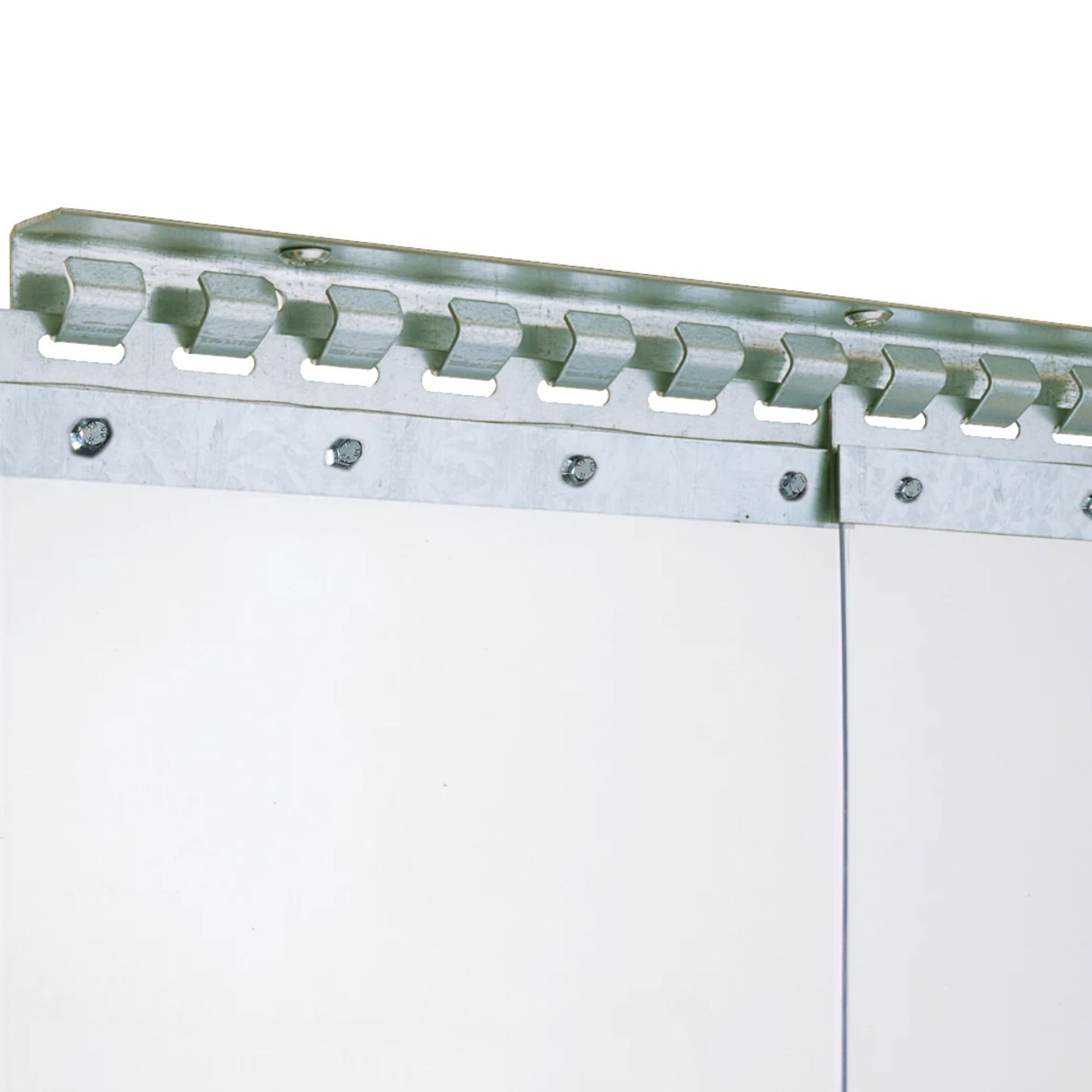 Die PVC-Lamellen sind bereits zugeschnitten, genietet und mit Befestigungsblechen vorbereitet. Sie werden einfach in die Befestigungsschienen eingehängt – für eine schnelle, stabile und werkzeugarme Montage.