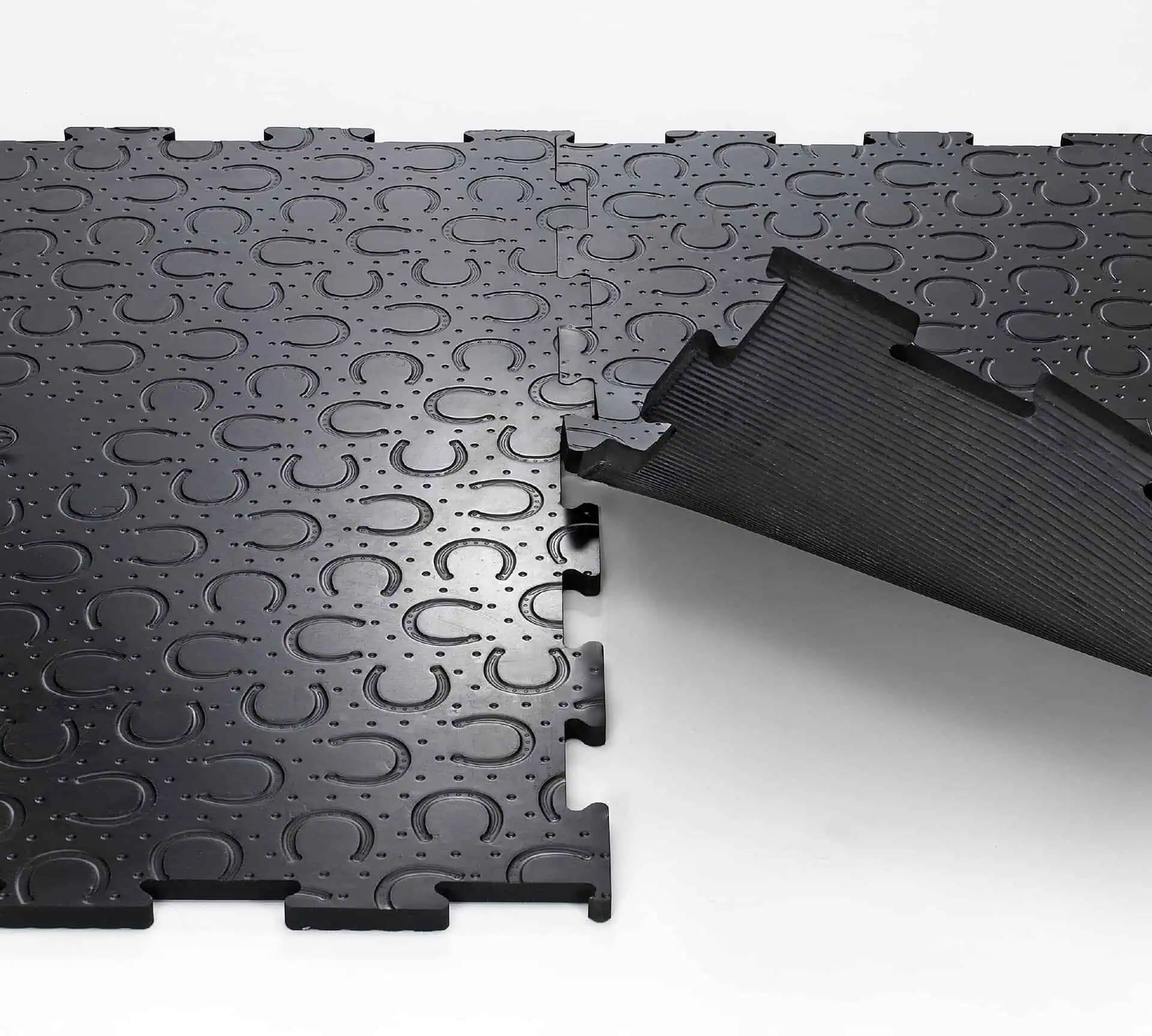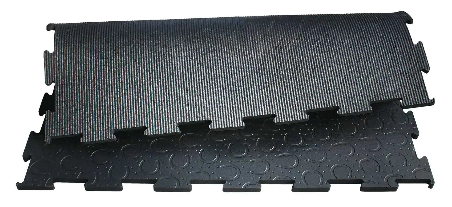 Die vulkanisierte Gummimatte ist nicht nur wärmedämmend, sondern reduziert auch den Einstreubedarf, den Pflegeaufwand und die Staubbelastung – das spart Zeit, Geld und schont die Atemwege deines Pferdes. Dank der cleveren Puzzle-Verbindung lassen sich die Matten einfach und passgenau verlegen, ohne dass sie am Boden fixiert werden müssen. Abgeschnittene Reste kannst du flexibel weiterverwenden – so wird kaum etwas verschwendet. Die Reinigung ist unkompliziert: Du kannst die Matten einfach herausnehmen, abspülen oder mit Hochdruck reinigen. Egal, welche Beschläge dein Pferd trägt – die Matte ist für alle Hufbeschläge geeignet.