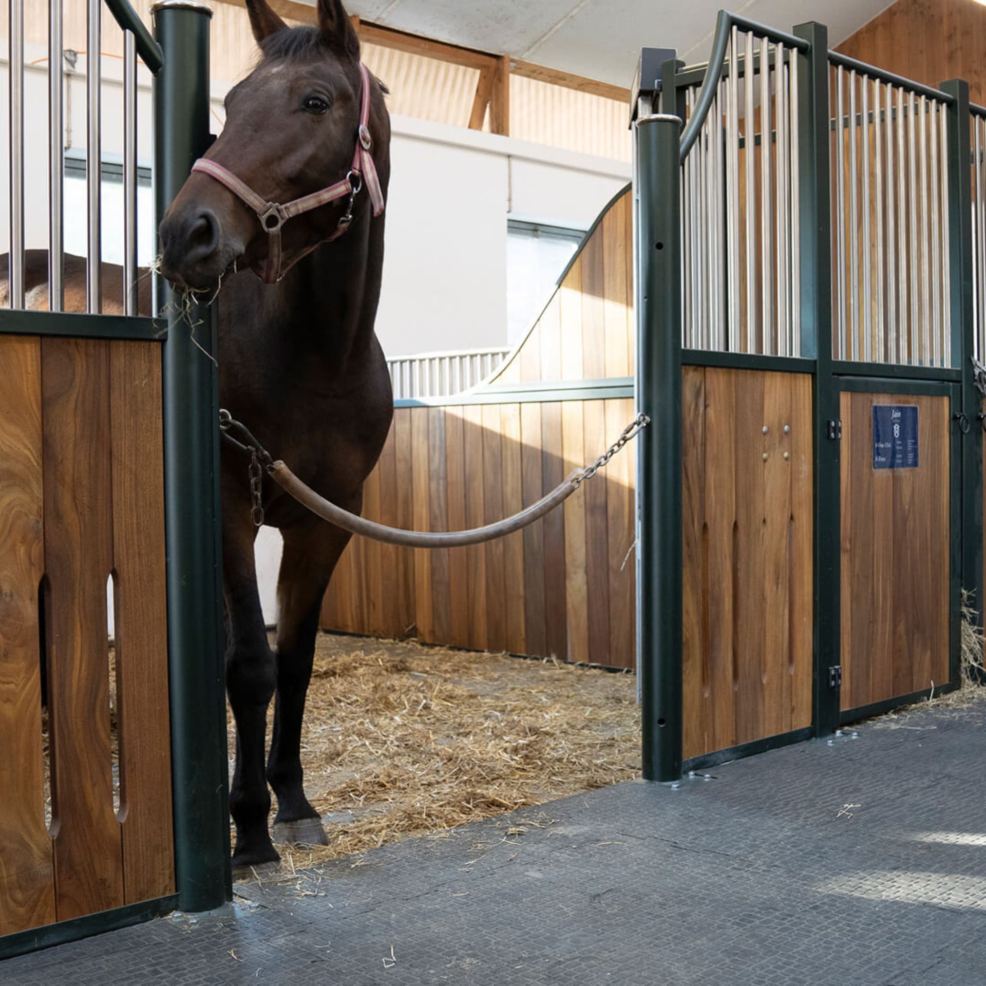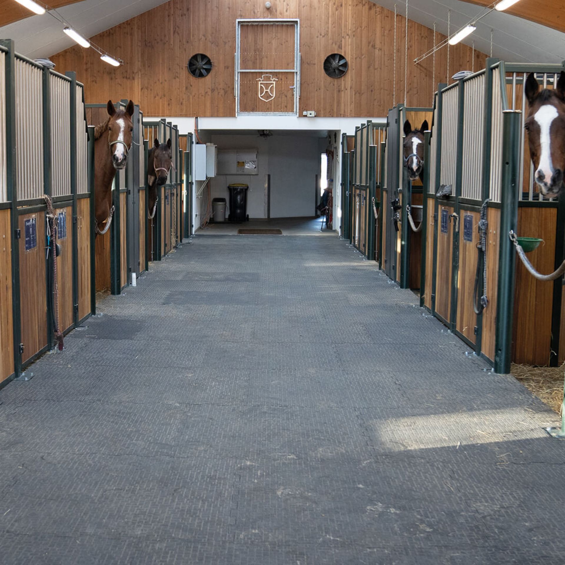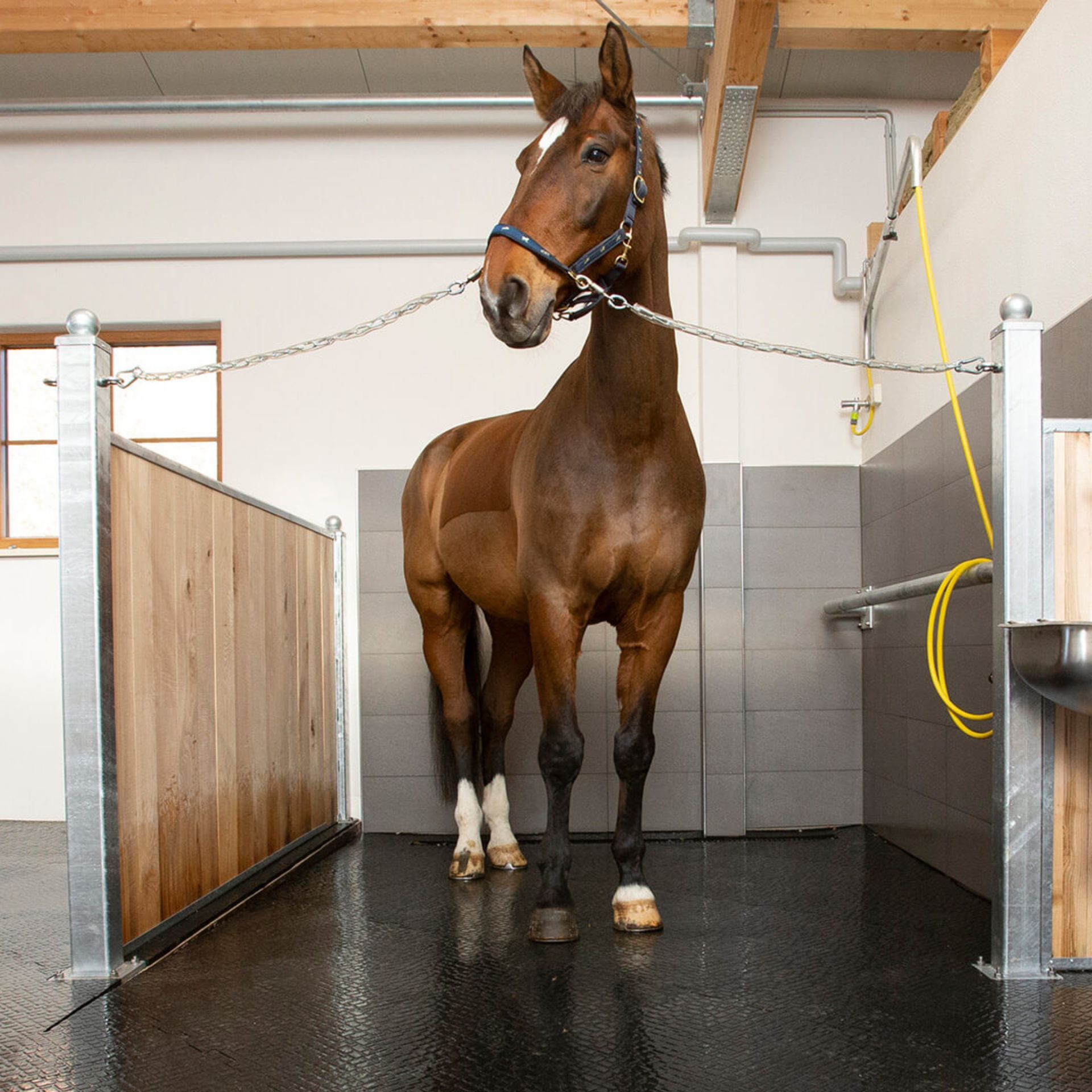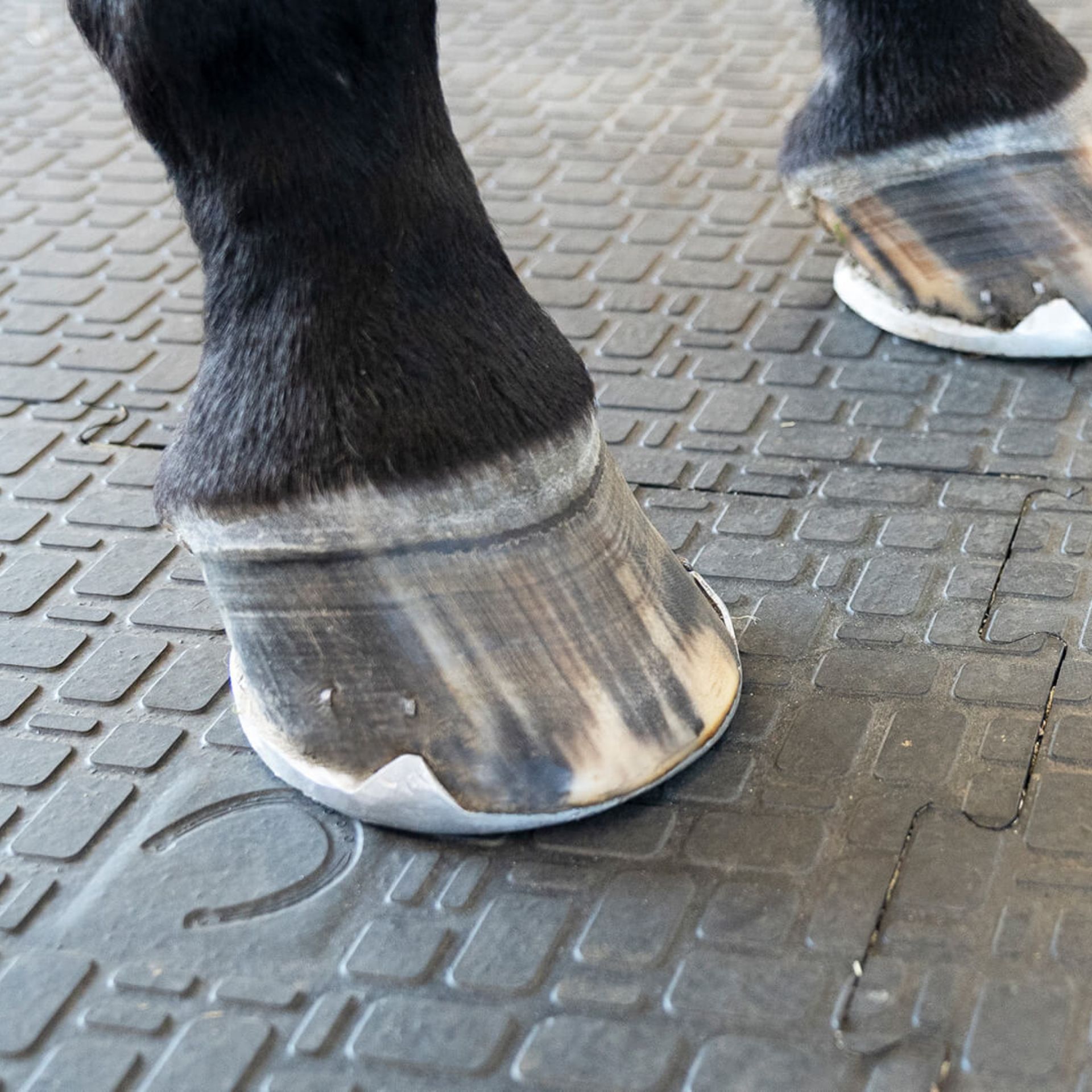 Die robuste Gummimatte ist super einfach zu säubern und dank des genialen Puzzlesystems kinderleicht zu verlegen. Sie ist mega strapazierfähig und passt zu jedem Hufbeschlag – perfekt für den täglichen Gebrauch!