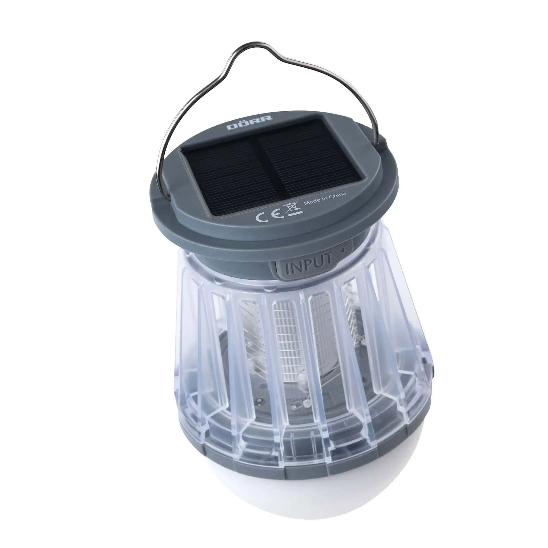 Die LED Solar Campinglampe Anti-Moskito erfüllt gleich zwei Funktionen auf effiziente Weise. Sie dient als zuverlässige Lichtquelle und als effektive Mückenfalle. Mit ihrem eingebauten Lithium-Ionen Akku, der sich über ein Solarpanel auflädt, ist sie überall einsetzbar und stets einsatzbereit.