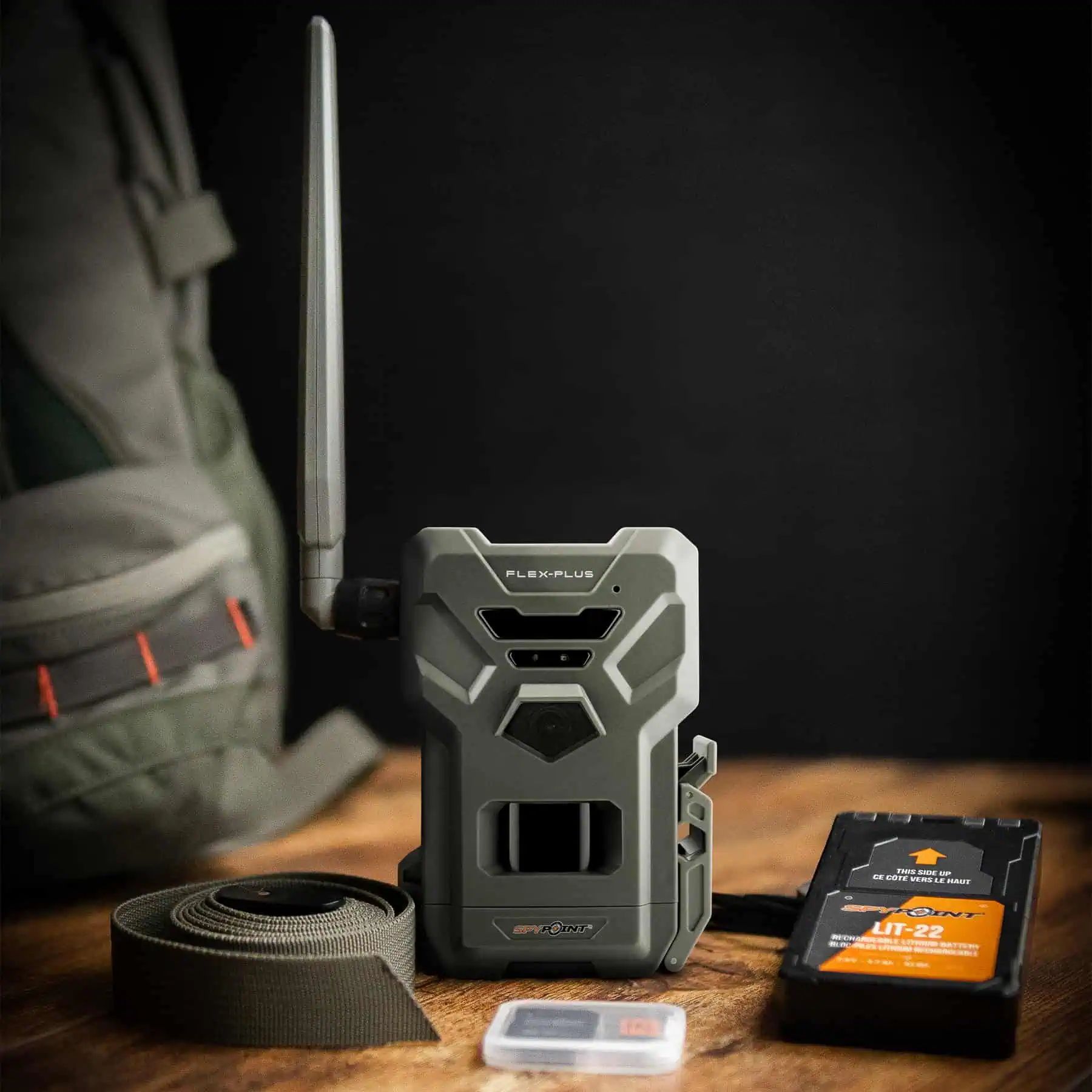 Ein herausragendes Merkmal der Spypoint Wildkamera FLEX-PLUS ist die Möglichkeit, mit doppelter Batteriekapazität die Laufzeit der Kamera erheblich zu verlängern. Sie können 8 oder 16 AA Batterien einlegen, um sicherzustellen, dass die Kamera lange betriebsbereit bleibt. Dank der integrierten Antenne und des Modems wählt sich die Kamera automatisch in das stärkste Netz ein und sorgt so für eine verlässliche Verbindung europaweit.