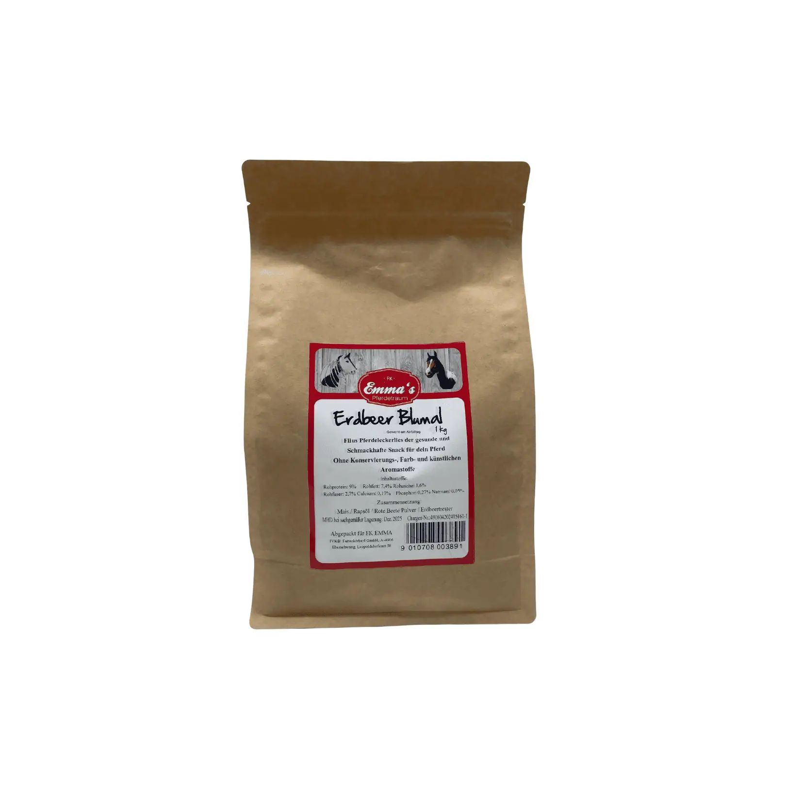 Mit Emmas Pferdeleckerli Erdbeer Blumal bietest du deinem Pferd eine gesunde und schmackhafte Belohnung. Diese 100 % natürlichen Leckerlis werden in einer kleinen Mühle in Deutschland ohne jegliche künstlichen Farb- und Konservierungsstoffe hergestellt. Dank der natürlichen Zutaten und der Abwesenheit von Geschmacksverstärkern sind sie vollkommen chemiefrei und somit bestens für die tägliche Fütterung geeignet. Mit ihrem intensiven Erdbeergeschmack und der extrem hohen Akzeptanz erfreuen sie selbst die wählerischsten Pferde.