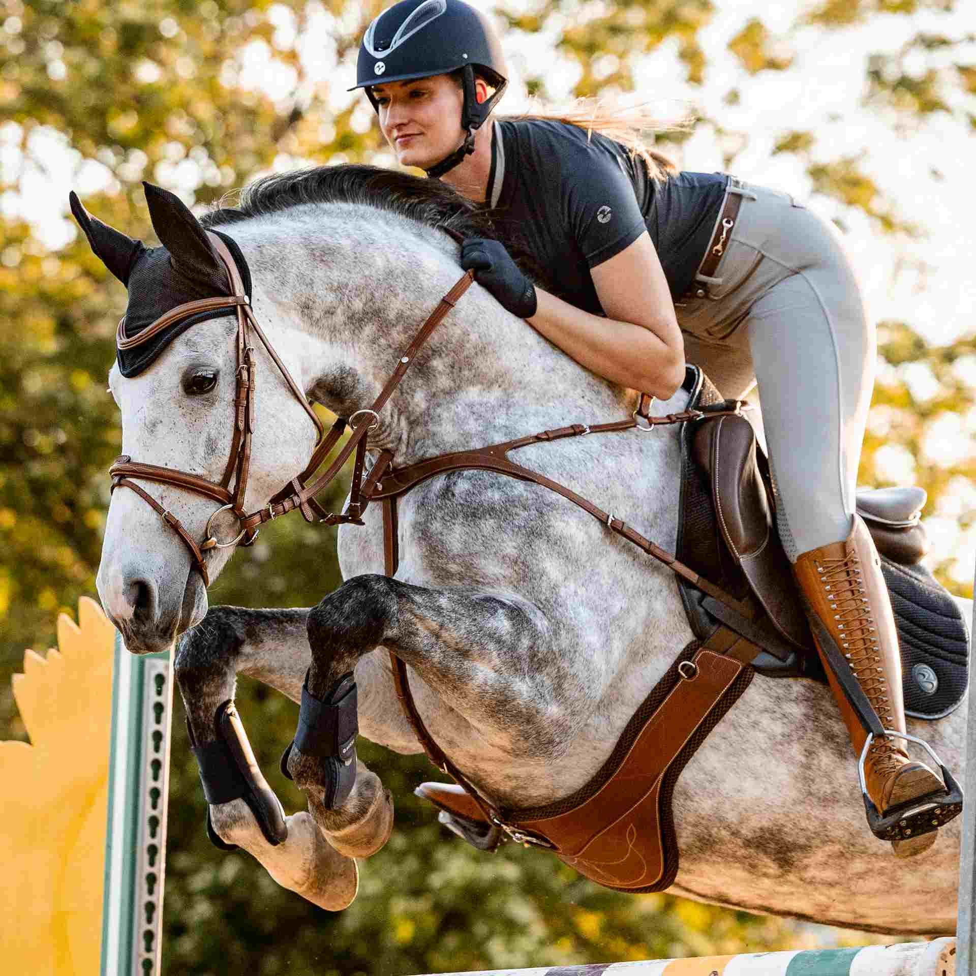Der BUSSE Sattelgurt TAKE-OFF LINE SG bietet nicht nur maximalen Schutz und Komfort, sondern hebt auch die Qualität und Vielseitigkeit von Lederequipment auf ein neues Level. Dieser Stollenschutzgurt ist anatomisch geschnitten und gewährleistet eine optimierte Druckverteilung sowie maximale Bewegungsfreiheit. Dies reduziert zuverlässig das Verletzungsrisiko durch Hufeisen oder Stollen beim Springen.