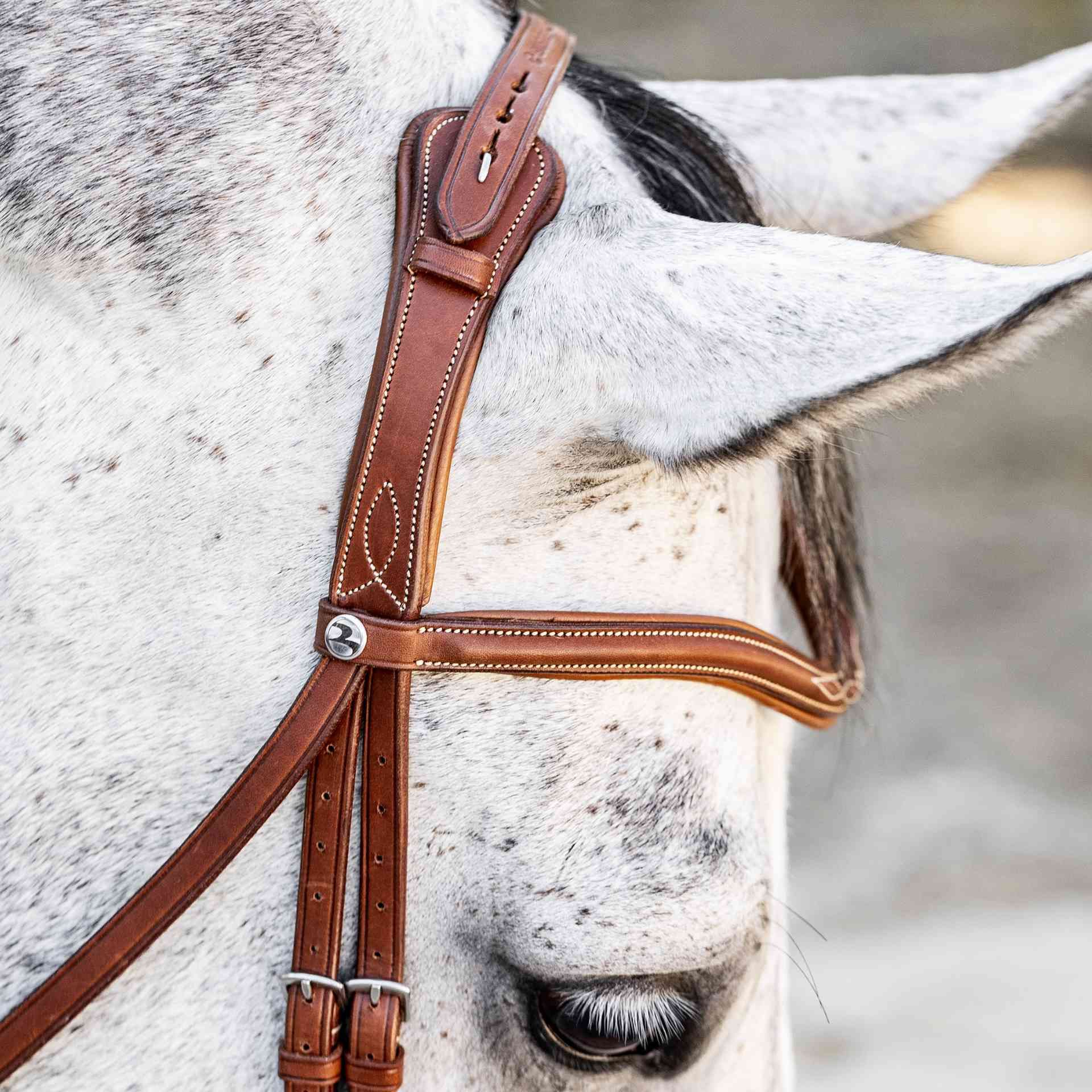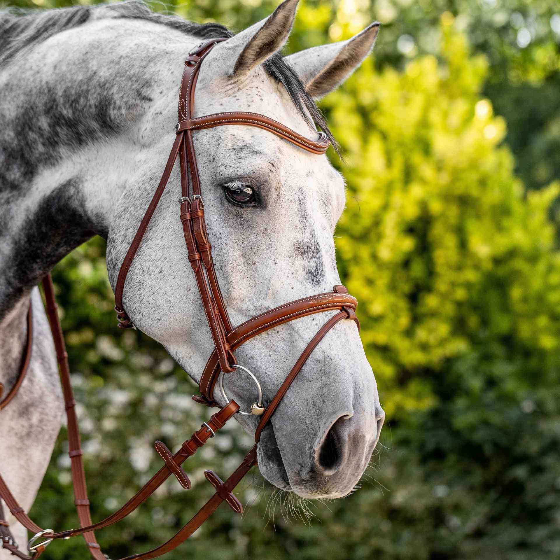 Regelmäßige Pflege mit geeignetem Lederpflegemittel hält das Leder geschmeidig und verlängert die Lebensdauer der Trense. Vermeide den Kontakt mit Wasser und trockne das Leder nach jedem Gebrauch gründlich ab.