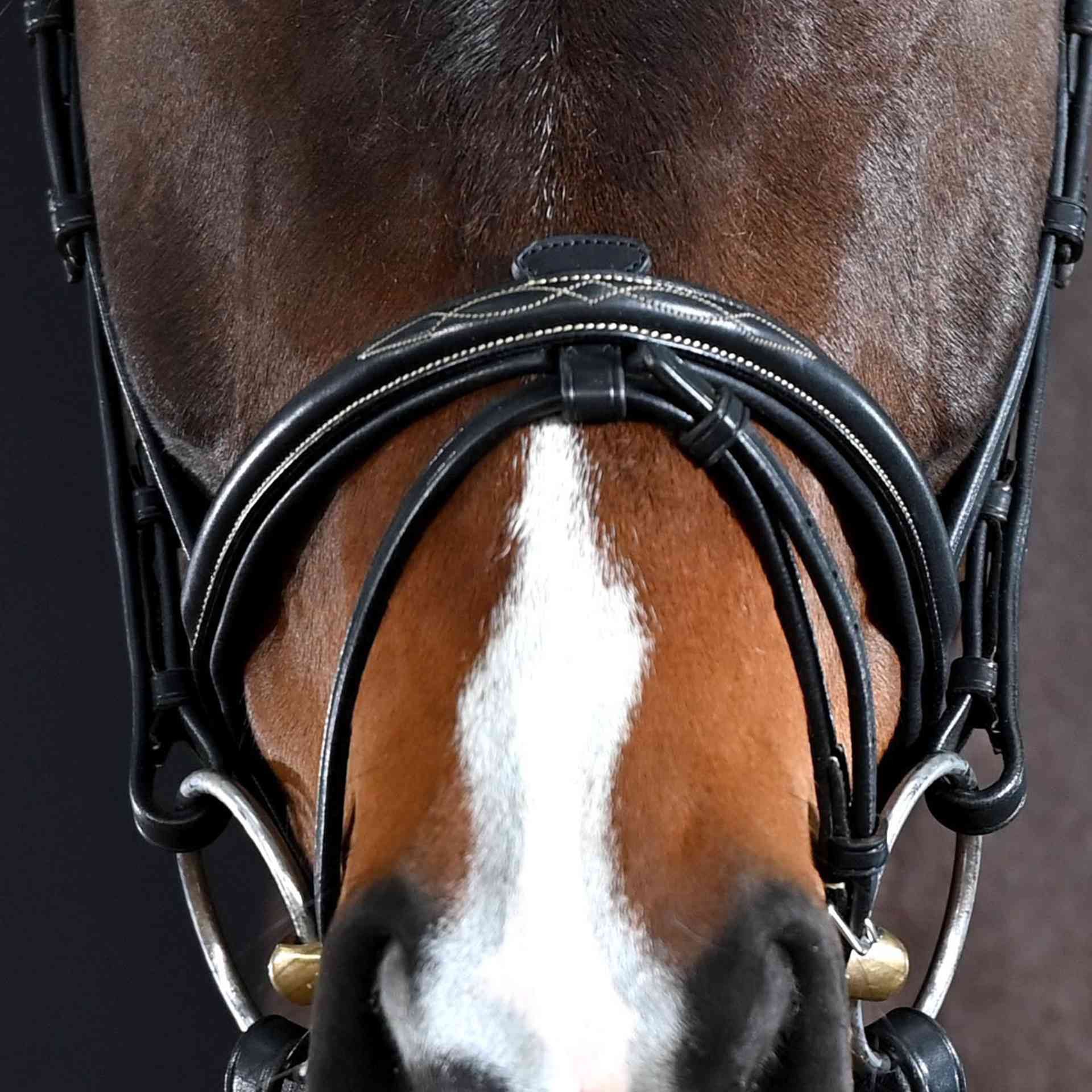 - Reithalfter: Englisch-kombiniert mit schmalem, weich unterlegtem Nasenriemen