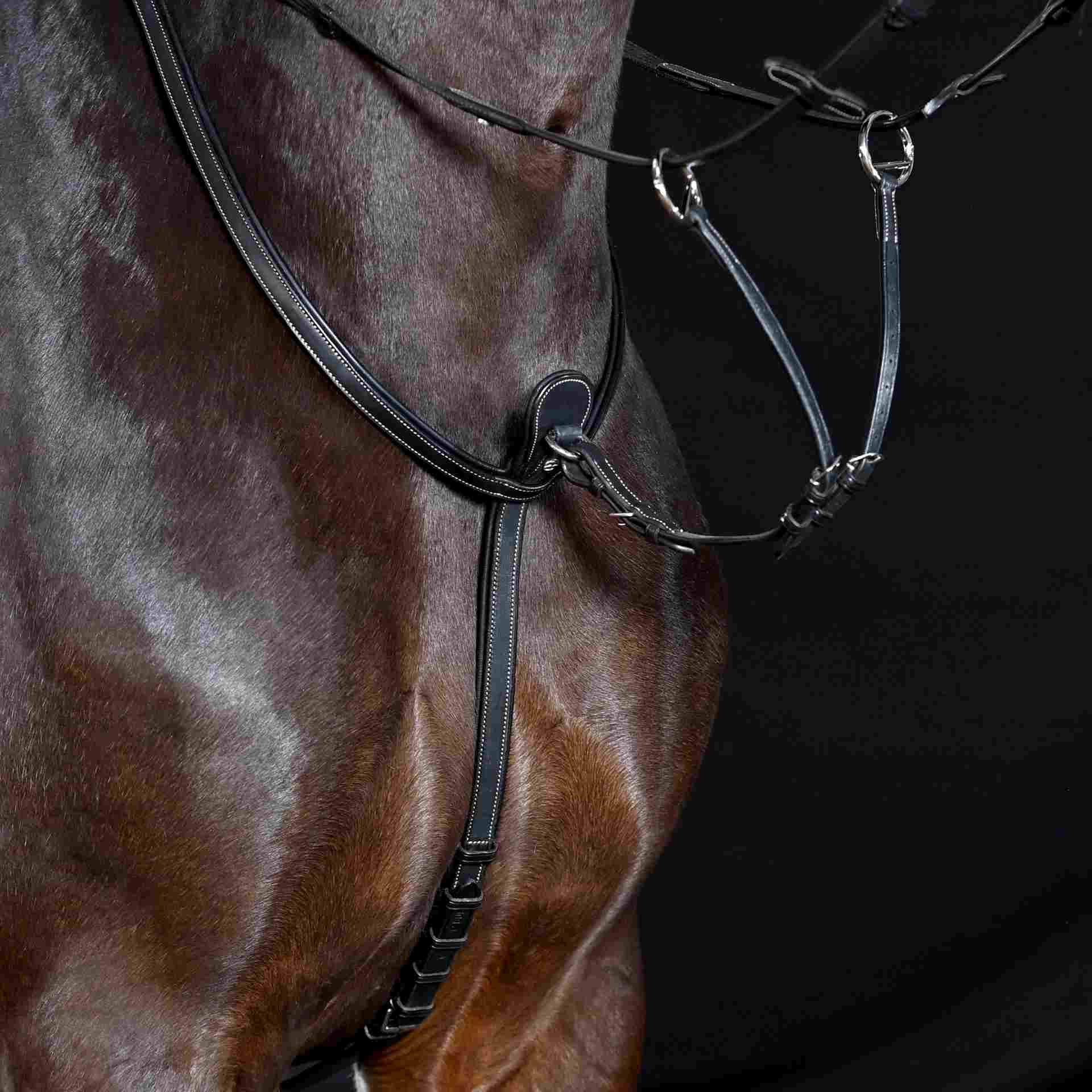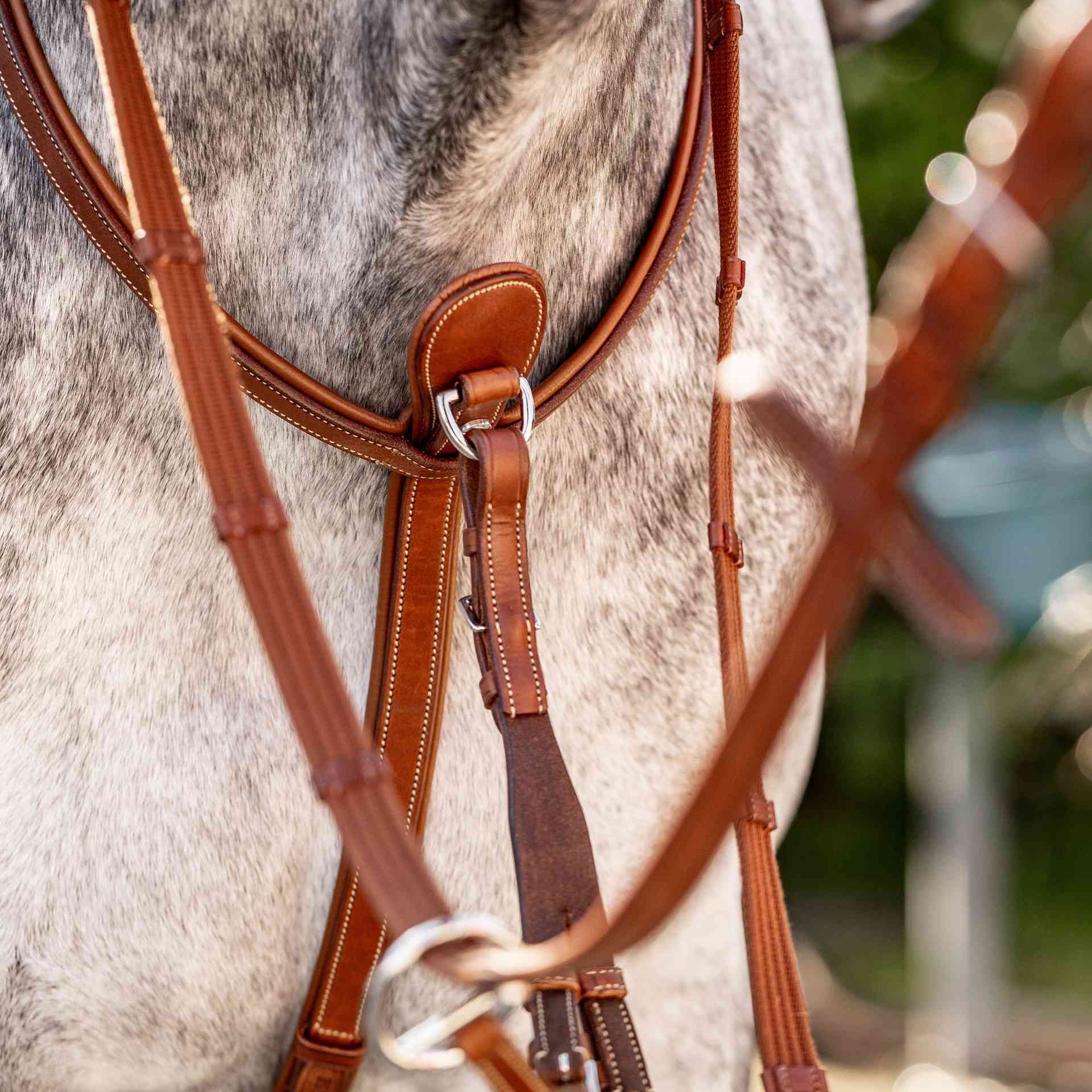 Besonders hervorzuheben ist die Herstellung aus bestem amerikanischem Leder, welches für seine außergewöhnlich hohe Qualität und softe Haptik bekannt ist. Dieses Leder ist überwiegend rein pflanzlich gegerbt, was nicht nur eine nachhaltige Produktion sicherstellt, sondern auch für eine lange Lebensdauer sorgt. Das Martingal schmiegt sich angenehm an das Fell des Pferdes an und überzeugt durch seine hochwertigen Edelstahlbeschläge.