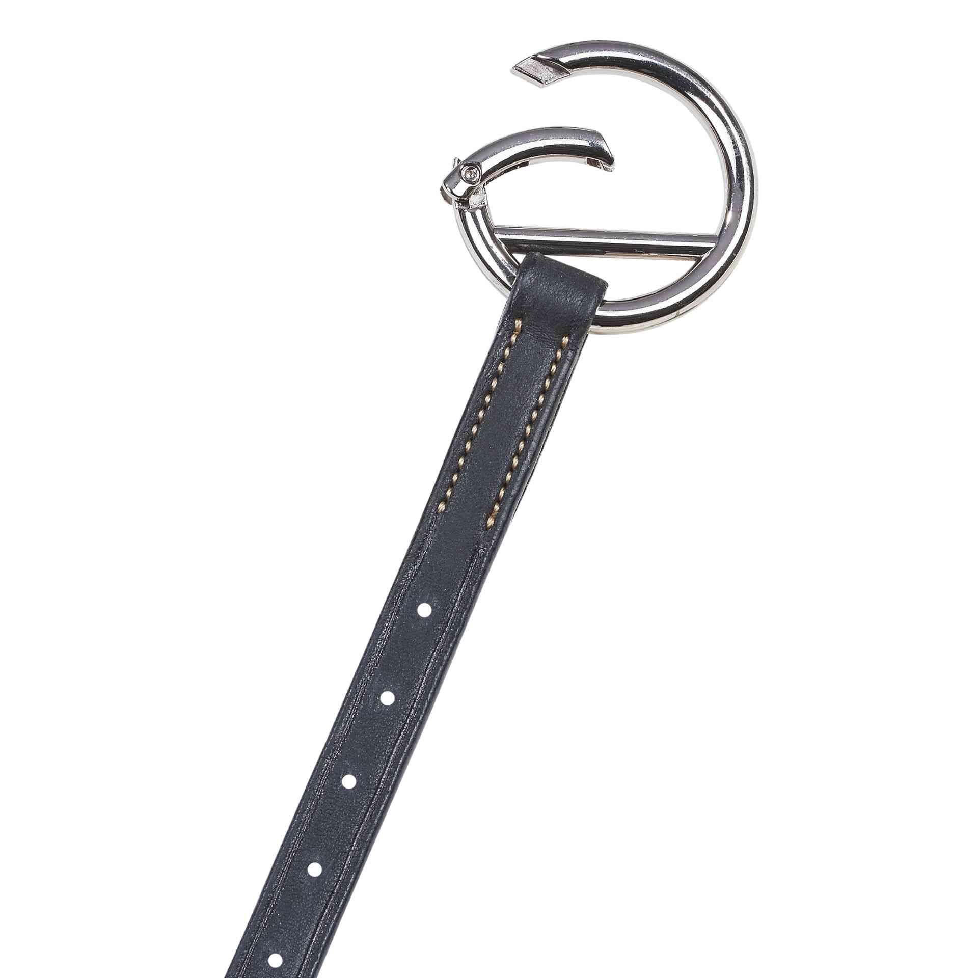 Das Martingal lässt sich mit den runden Snap-Karabinern direkt in die Zügel einhaken, ohne dass diese extra geöffnet oder über den Pferdekopf geführt werden müssen. Der Riemen, der zwischen den Vorderbeinen verläuft, kann sowohl mit als auch ohne den Karabiner mit dem Sattelgurt verbunden werden.