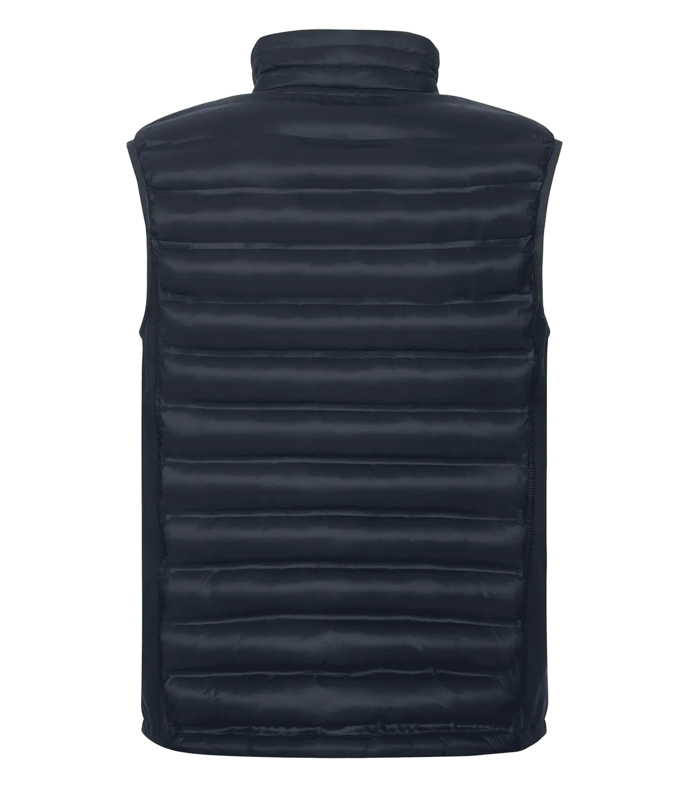 Die Weste besteht aus Softshellmaterial an den Seitenteilen und ist im Vorder- und Rückenteil durchgehend wattiert.