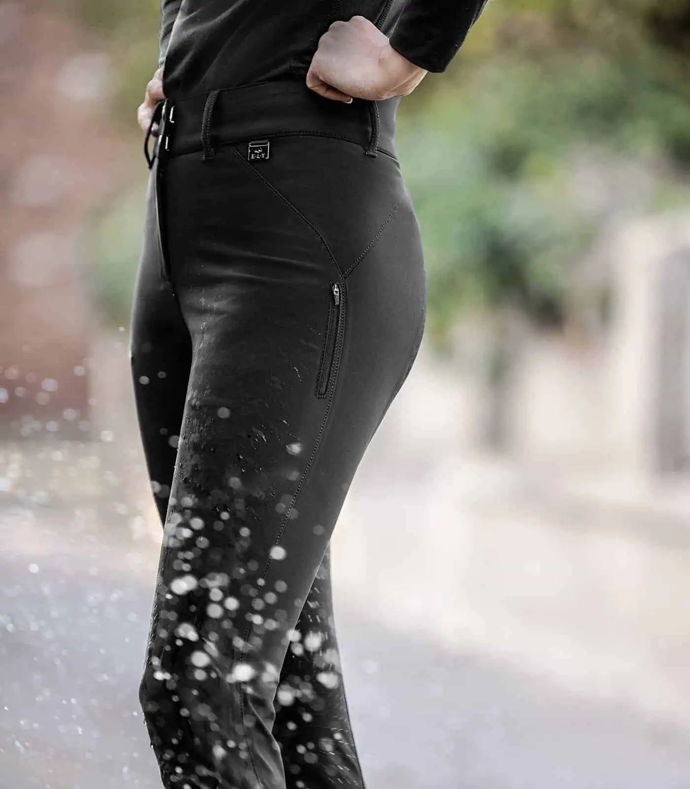 Die wasserdichte Membran mit einer Wassersäule von 5.000 mm hält dich bei jedem Wetter trocken. Versiegelte Seitennähte und ein robuster YKK-Reißverschluss garantieren zusätzliche Sicherheit vor Wind und Regen. Praktische Details wie Eingrifftaschen und eine Handytasche mit wasserdichtem Reißverschluss machen die Reithose zu einem vielseitigen Begleiter.