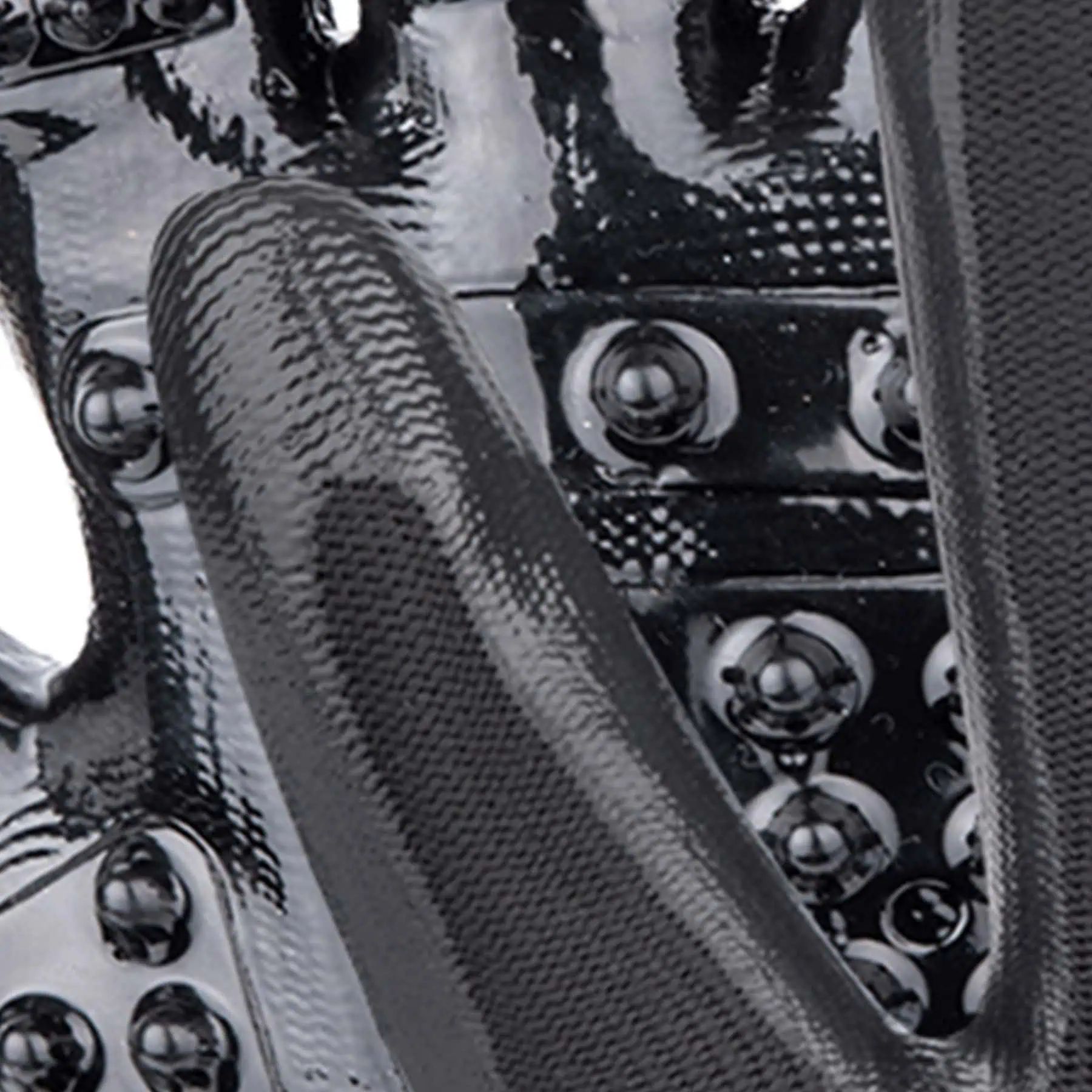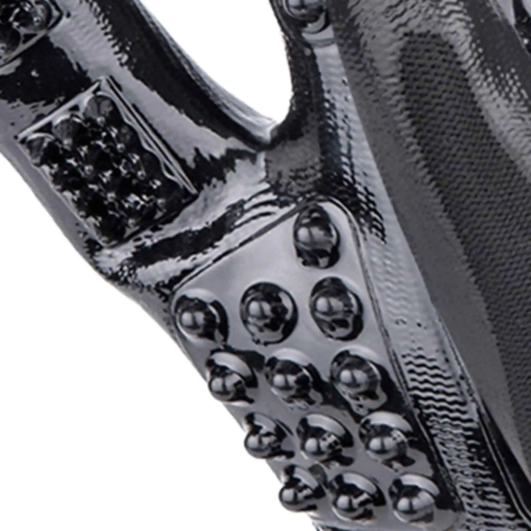 Durch die praktische 5-Fingerform und dem Bündchen mit verstellbarem Klettverschluss wird ein Verrutschen während des Pflegens und Massierens verhindert. Die spezielle Noppenstruktur an der Handinnenfläche entfernt zuverlässig lose Haare und Schmutz und kann dabei helfen die Durchblutung des Tieres zu verbessern.