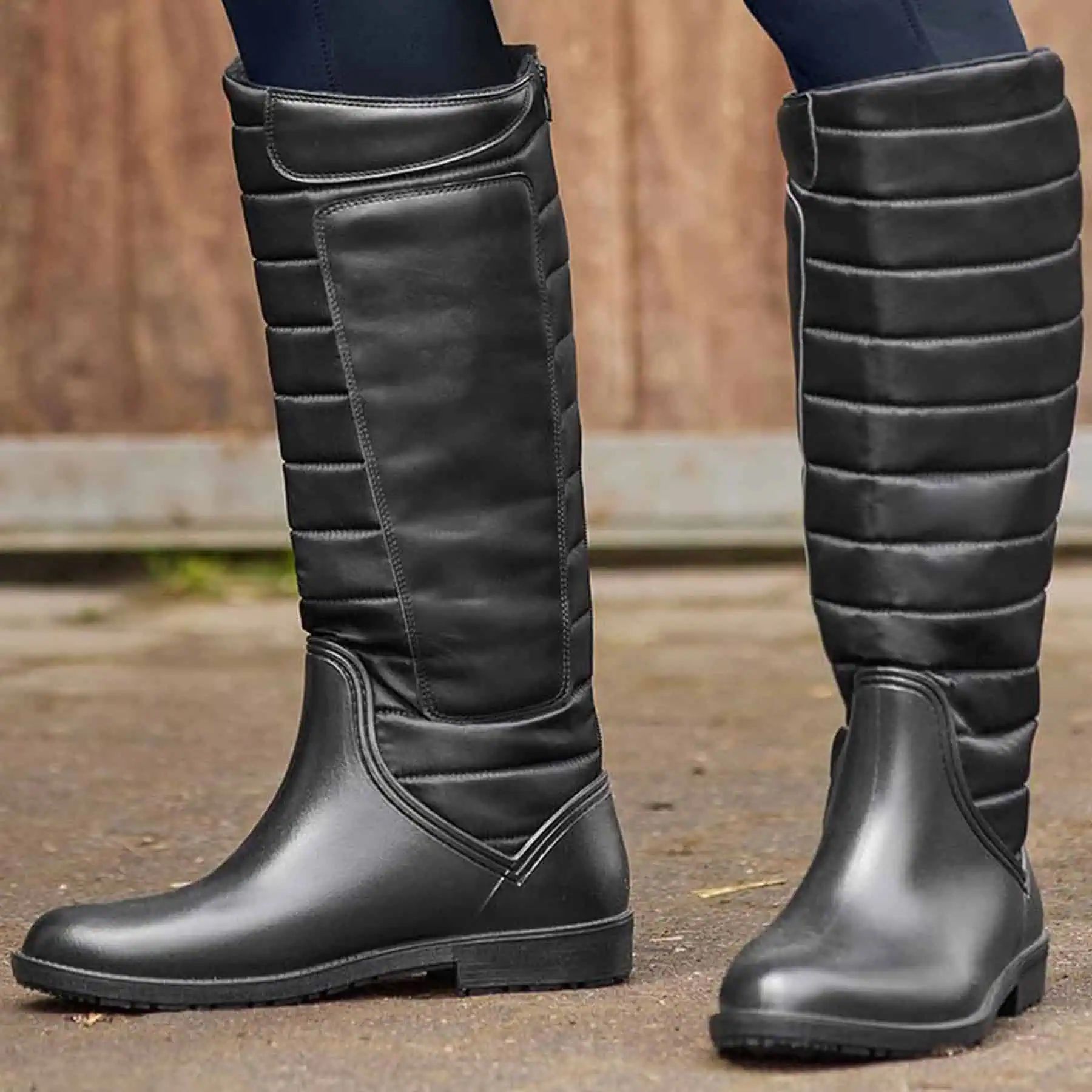Die Stiefel haben eine rutschfeste Sohle.