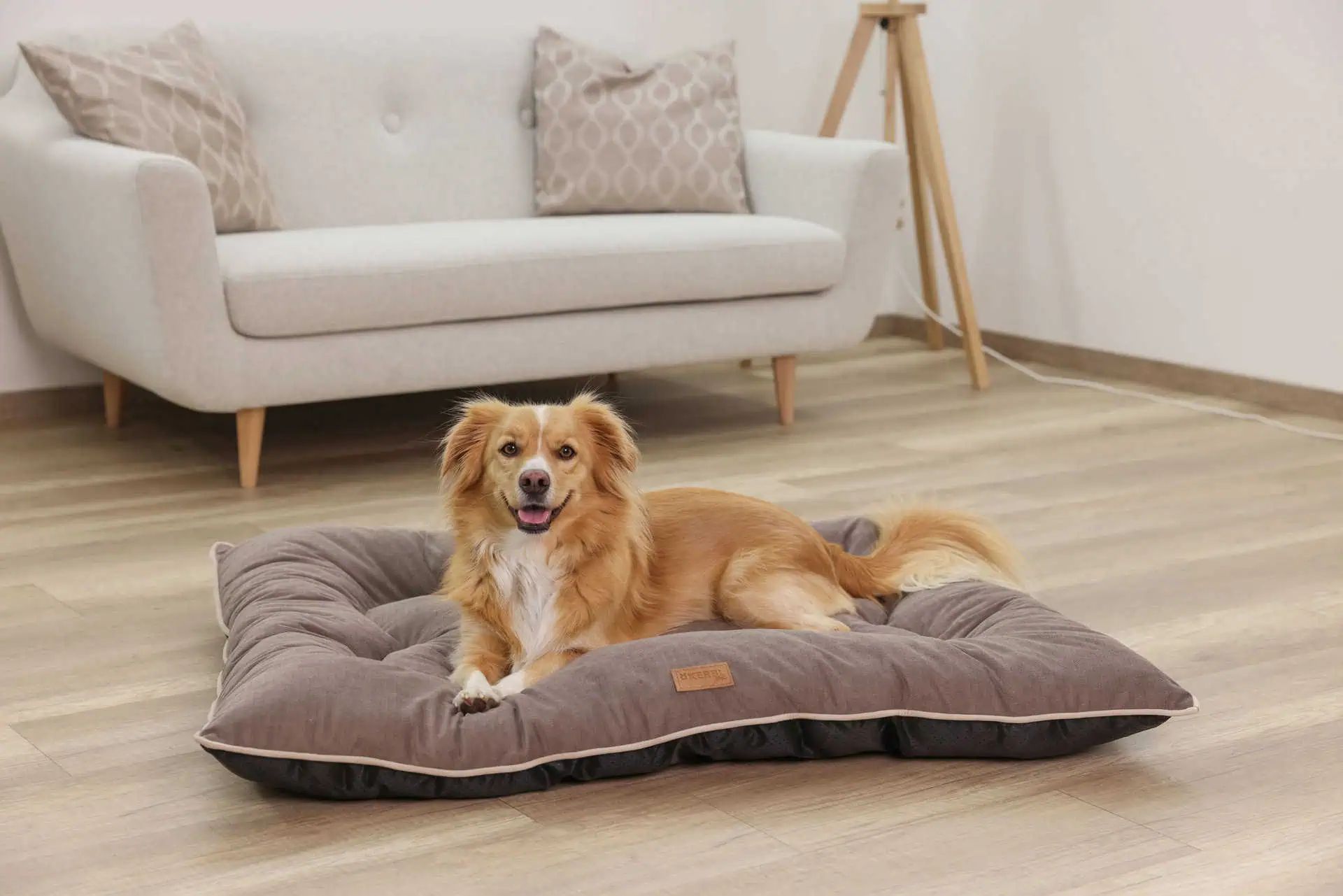 Das Liegekissen Benno ist die perfekte Lösung für alle Hunde, die ein komfortables und zugleich stilvolles Ruheplätzchen benötigen. Dieses kuschelige Liegebett aus hochwertigem Chenille-Stoff bietet einen außergewöhnlichen Komfort, der durch seine angenehm weiche und formstabile Füllung unterstützt wird. Ideal geeignet für alle Hunderassen, inklusive sehr großer Hunde, sorgt das Liegekissen für eine gemütliche Ruhepause. Dank der extra wärmenden Eigenschaften, hält es erfolgreich die Bodenkälte ab und bietet eine zusätzliche Gemütlichkeit. Das Kissen ist zudem mit einer farblich abgesetzten Borte ausgestattet, die dem Liegekissen ein modisches Flair verleiht. Die Unterseite besteht aus robustem und schmutzabweisendem Oxford-Gewebe, was die Langlebigkeit und Pflegeleichtigkeit des Produkts erhöht.