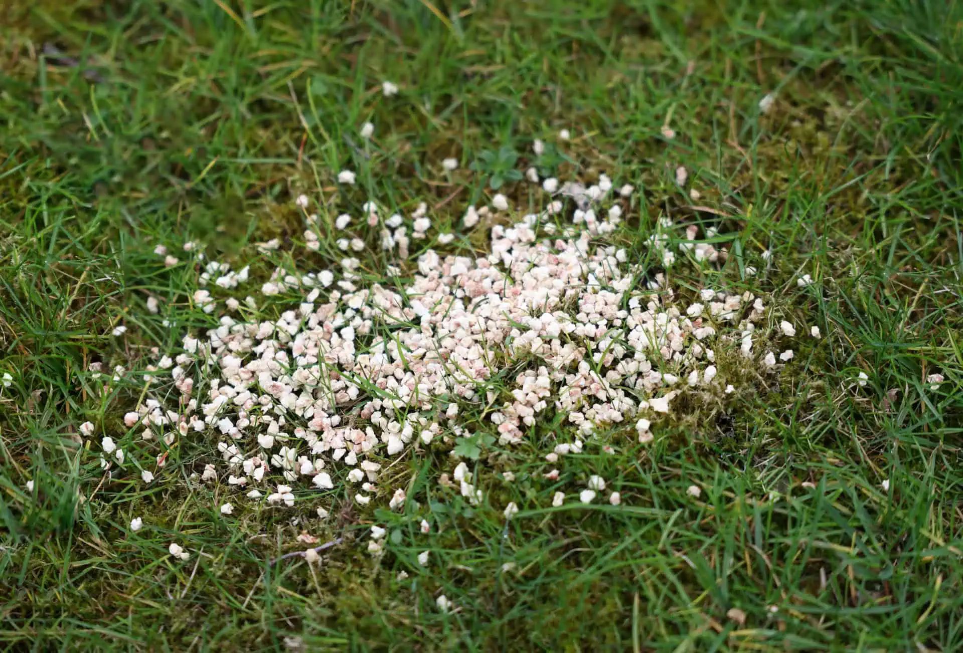 Bilde kleinere Häufchen des Granulates im Abstand von je einem Meter auf den zu schützenden Flächen (Rasen, Blumenkästen, Gemüsegärten). Wiederhole den Vorgang erneut bei einem Starkwetterereignis, jedoch maximal einmal pro Woche. Das Granulat wirkt direkt nach dem Auftragen.