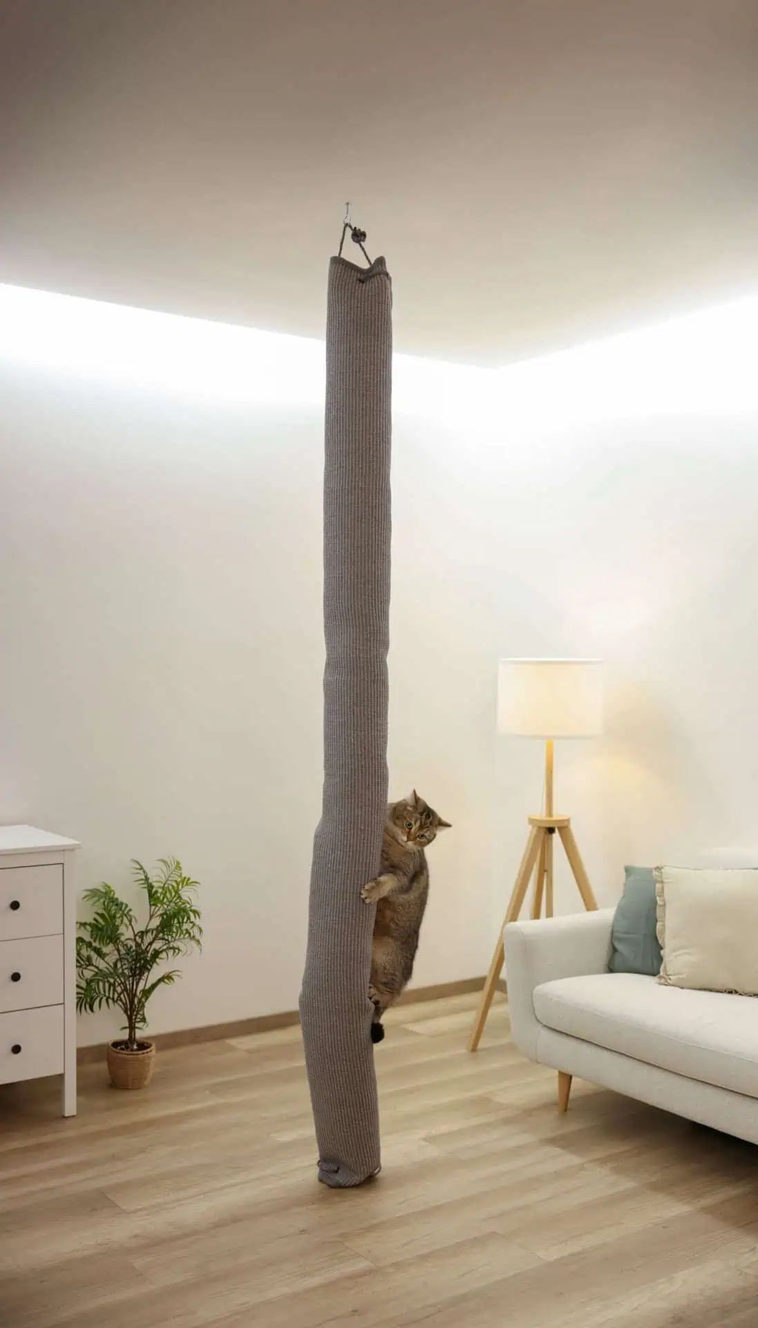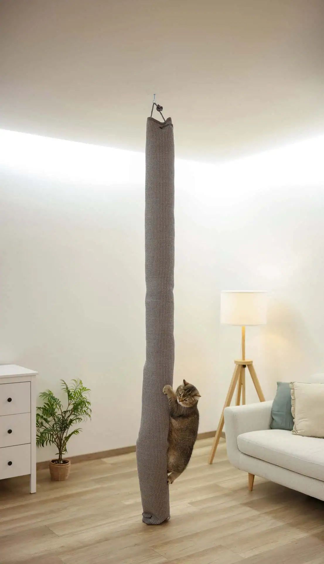 Dank des individuell einstellbaren Befestigungsseils kann die Länge des Klettersacks einfach angepasst werden, sodass er sich perfekt an Ihre Wohnsituation anpasst. Inklusive Befestigungsmaterial für die Decke geliefert, lässt er sich problemlos montieren. Die Flexibilität dieses Produkts ist bemerkenswert: Der Klettersack Climber kann super zu bestehenden Kratzbäumen hinzugefügt werden, um die Kletterflächen zu erweitern. Außerdem ist er dank der Haken einfach auf- und abzuhängen, was die Reinigung und Anpassung zu einem Kinderspiel macht. Mit einer Höhe von 240 cm und in den Farben Beige oder Grau erhältlich, fügt er sich nahtlos in jede Wohnumgebung ein.