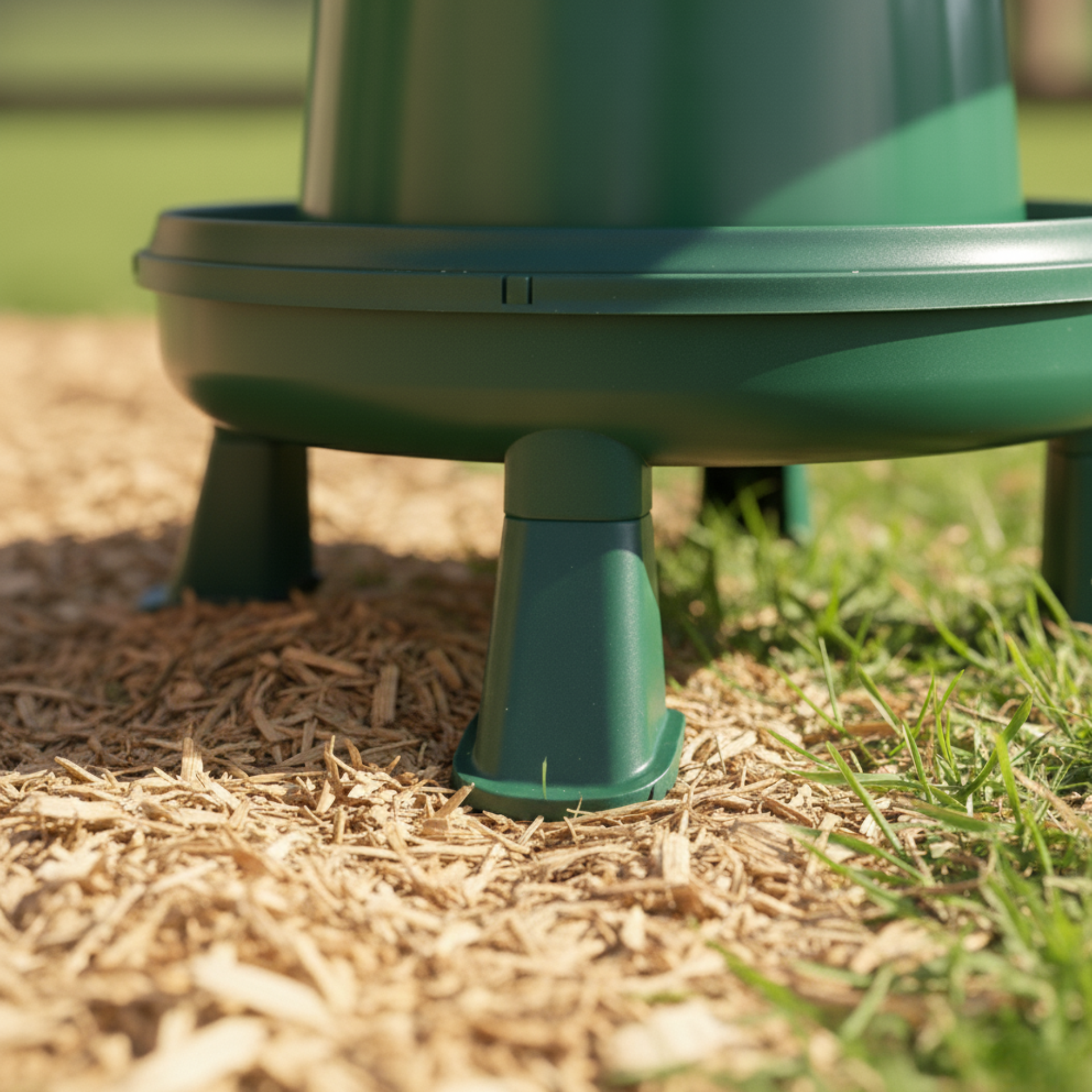 Hergestellt aus 100% recyceltem Kunststoff, ist der Futterautomat nicht nur funktional, sondern auch eine umweltbewusste Wahl. Mit einer großzügigen Kapazität von 4 kg bietet er ausreichend Platz für das Futter deiner Hühner. Die stabilen Füße sorgen für einen sicheren Stand, sodass der Futterautomat selbst bei unruhigen Bedingungen fest auf dem Boden bleibt. Der Geflügelfutterautomat eignet sich ideal für Hühnerhalter und Geflügelzüchter, die Wert auf eine nachhaltige und effiziente Fütterung legen.