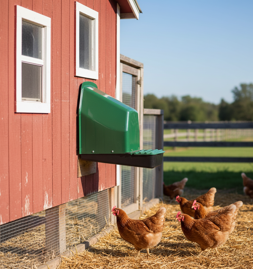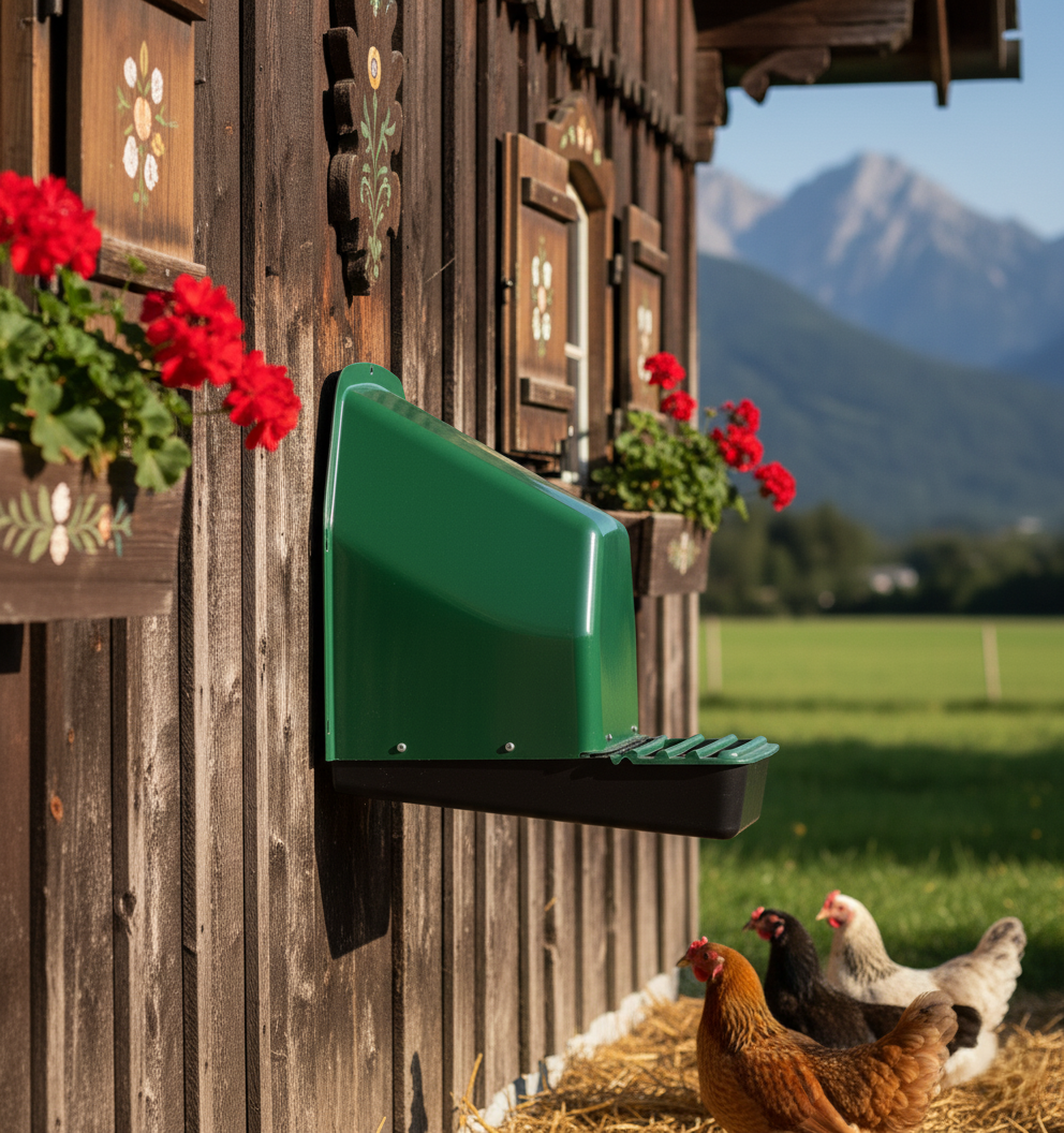 - Einfach von außen am Hühnerstall zu montieren